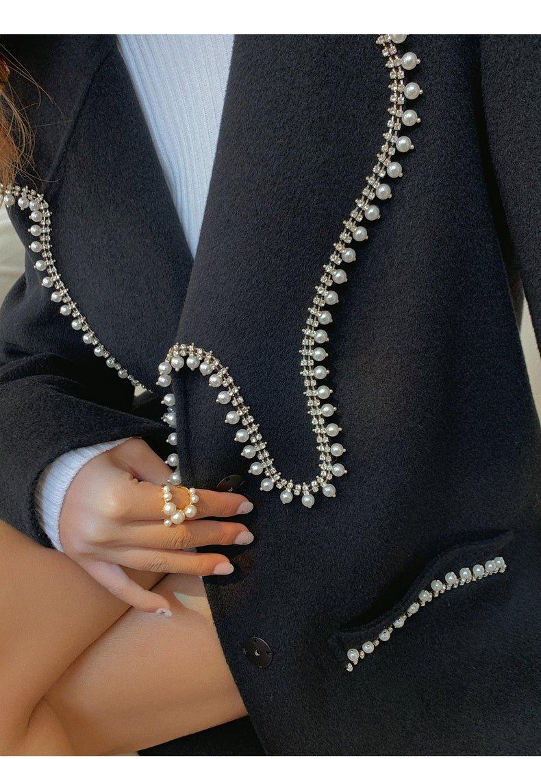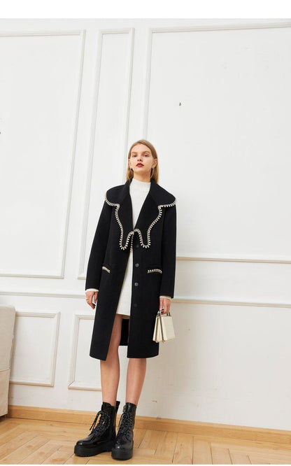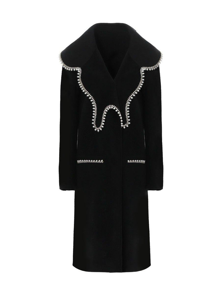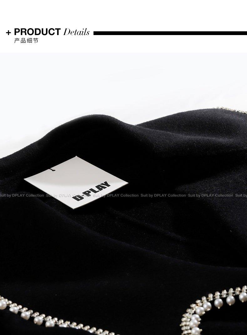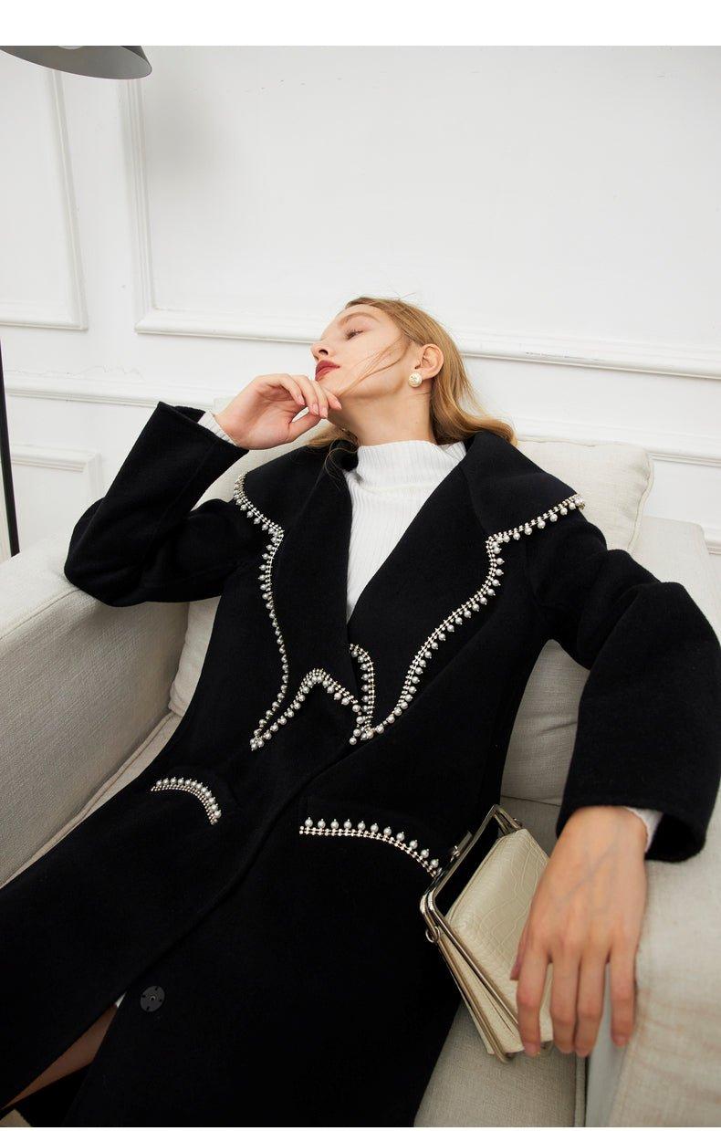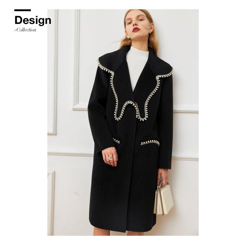DPLAY Fall Winter Black Pearl Collar 100% Wool Reversible Jacket coat - Usi