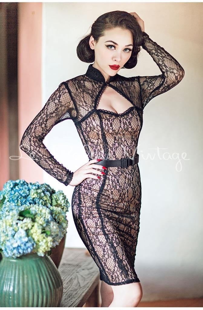 Le Palais vintage retro pin up black lace cut out pencil dress- Hitas