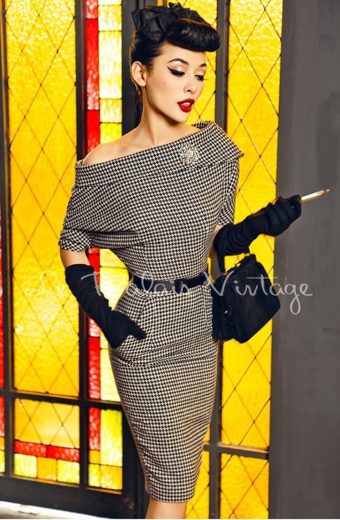 Le palais vintage retro pin up hound's-tooth pencil off shoulder dress