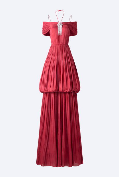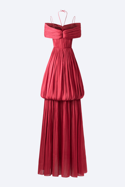 Off-Shoulder Bubble Flare Pleated Full Dress