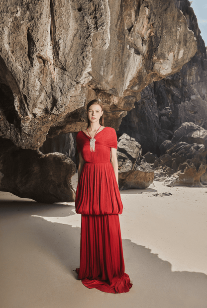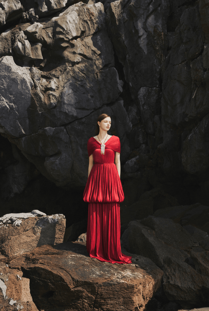 Since its introduction in the 1950s by Christian Dior, the Bubble Dress has always been the favorite choice of the world's top stars. Inspired by the style of European and American stars, Tracy brings fashion lovers a full dress model with Bubble Flare Full Dress design. This is a unique combination, very suitable for important events when the Bubble skirt (puffy dress) combined with the iconic full dress, giving the wearer a luxurious and elegant style, autumn. attract all eyes in any event. With this design, Tracy also added iconic details such as pleats and Off-Shoulder styling to accentuate femininity and glamor.