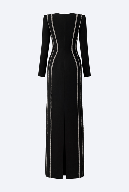 Crystal - Embellished Long Sleeve Bodycon Full Dress