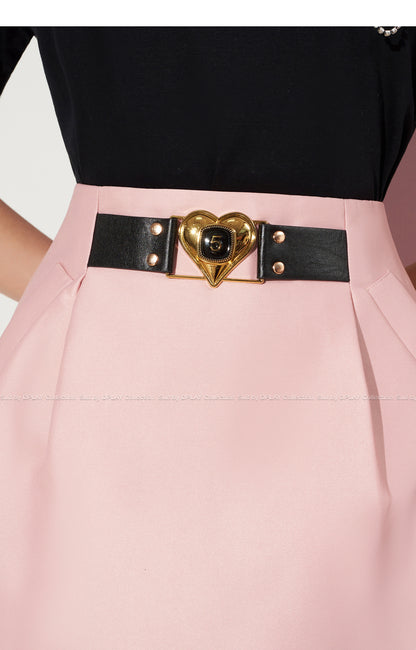 Custom embossed belt high-waisted puffy short skirt - Nia