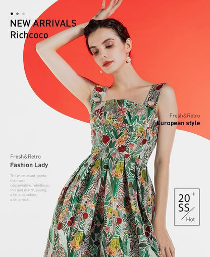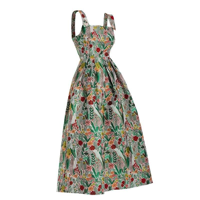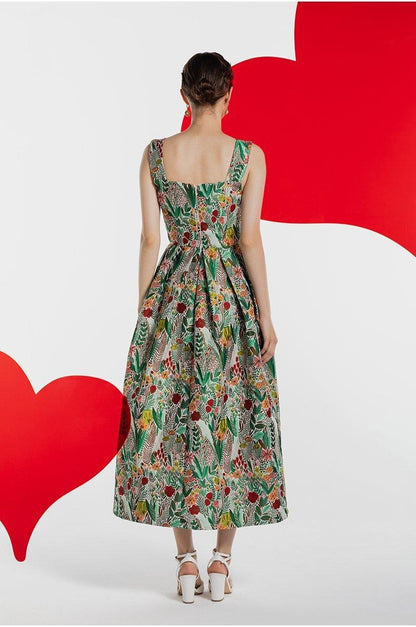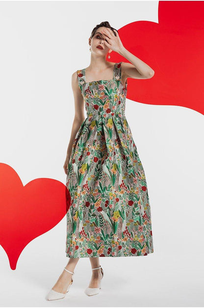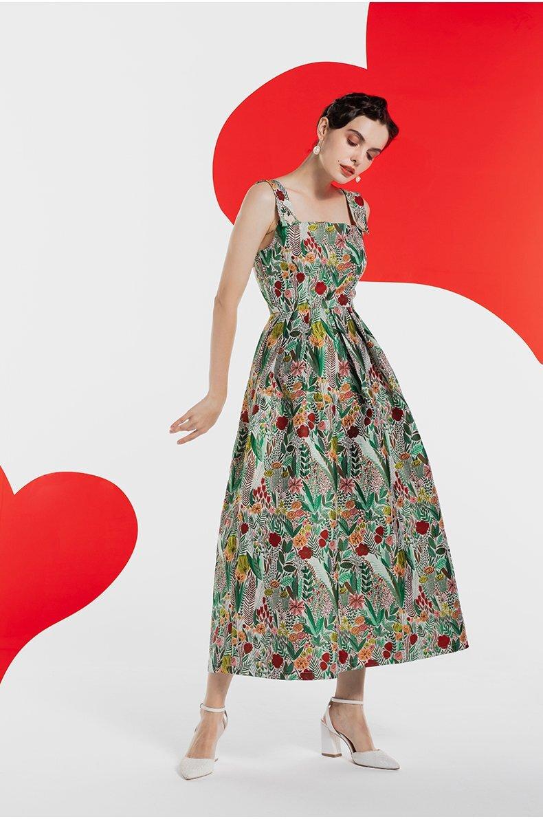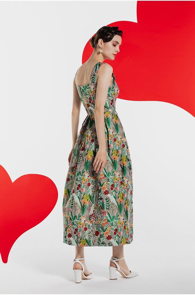 Custom green floral jacquard princess sling fairy dress - Ruila