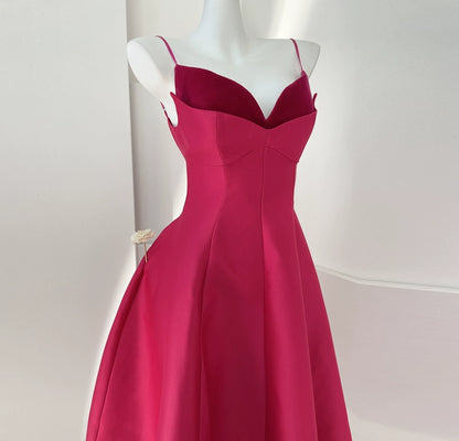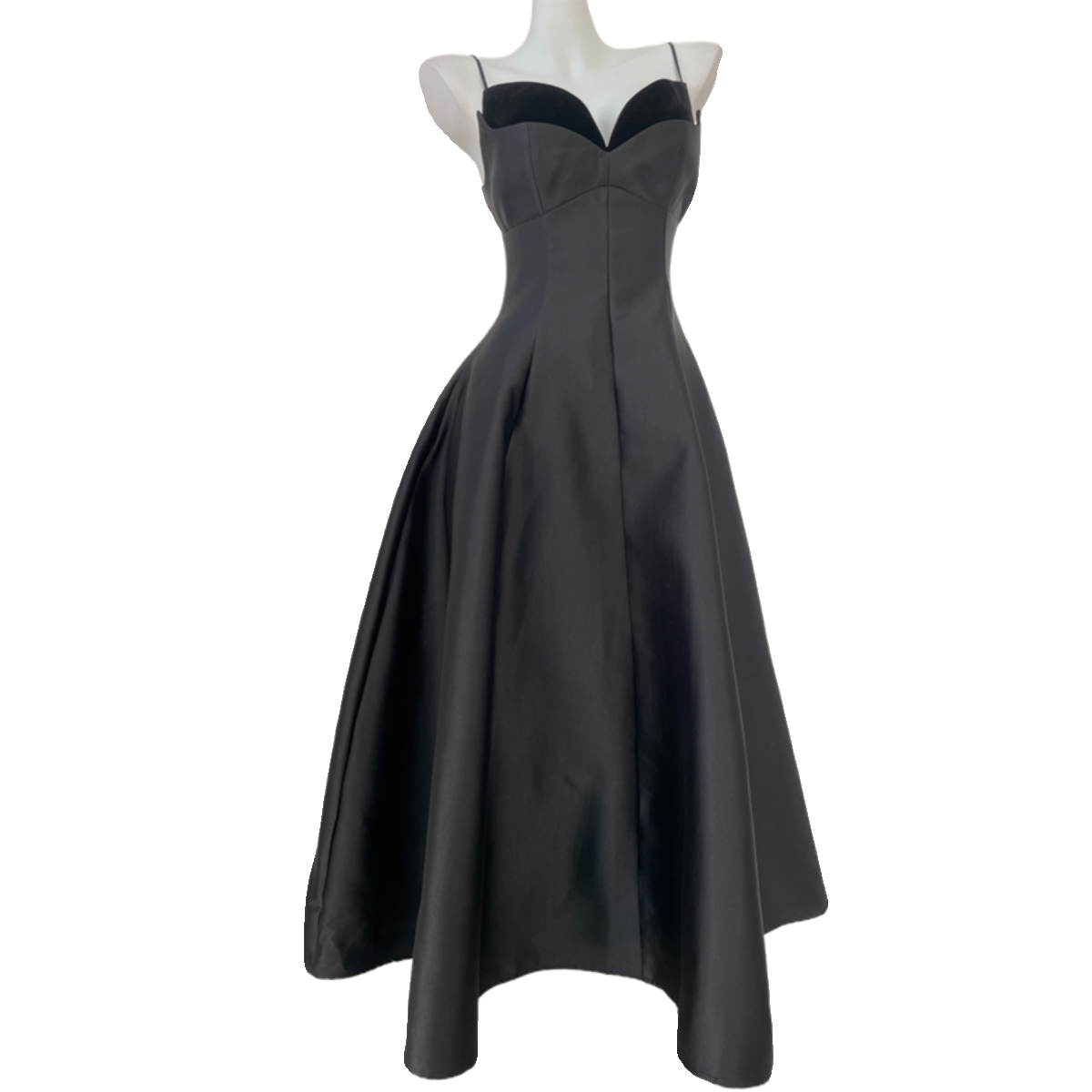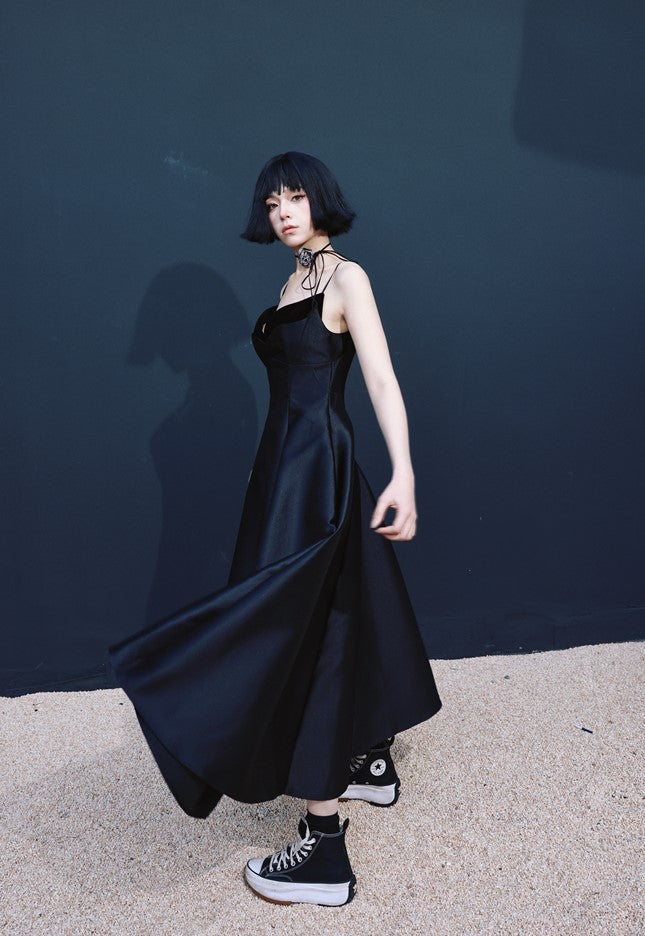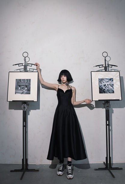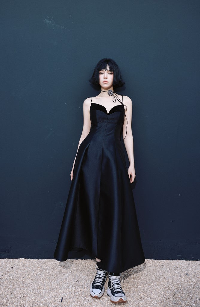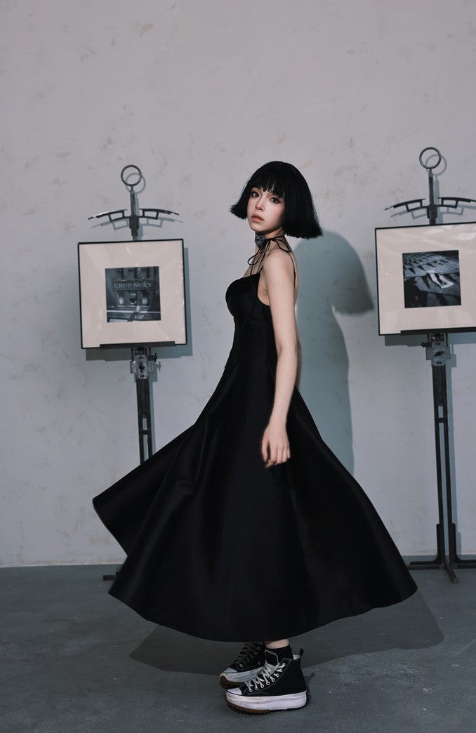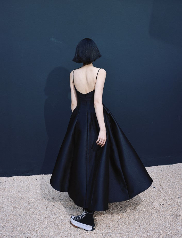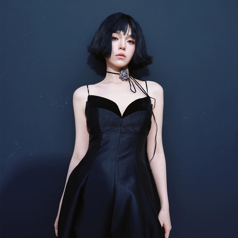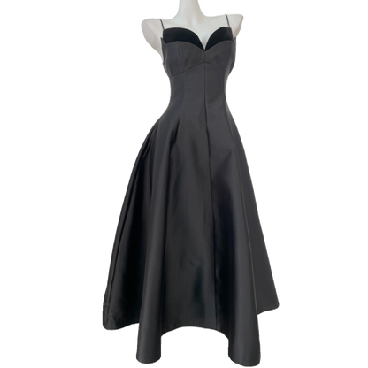 DOLLY Elegant Black French Style V-Neck High Waist A-line Suspender Date Dress-NECHE (V)