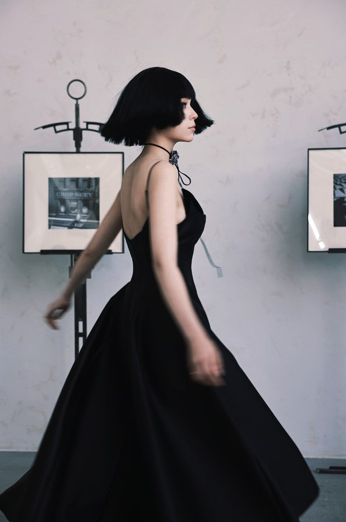 Indulge in the luxury of the DOLLY Elegant Black dress. The French-inspired design, with a V-neckline, high waist, and A-line silhouette, exudes timeless elegance. The unique suspender detailing adds a chic touch to this dress, making it the perfect choice for a date night. Elevate your style with NECHE.