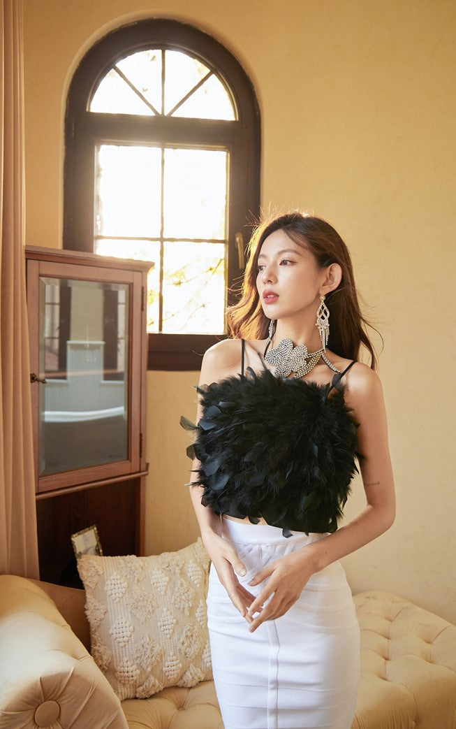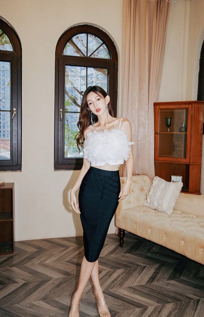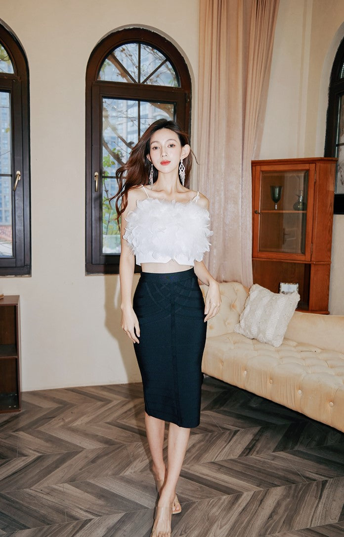 DOLLY Elegant Black/White Sleeveless Suspender Short Chic Vest-CASA