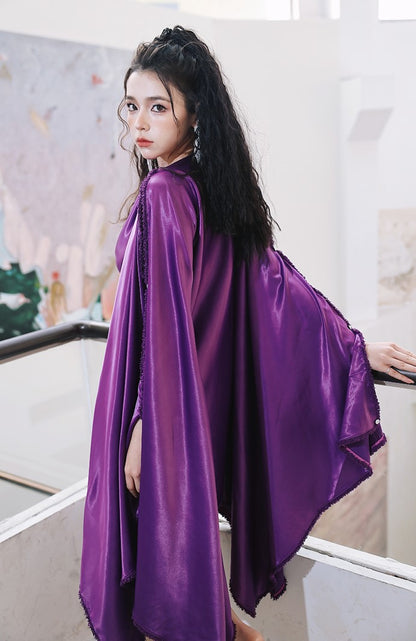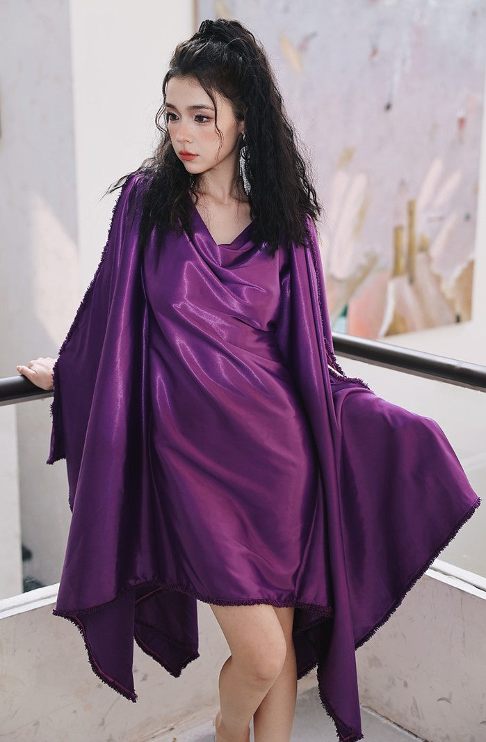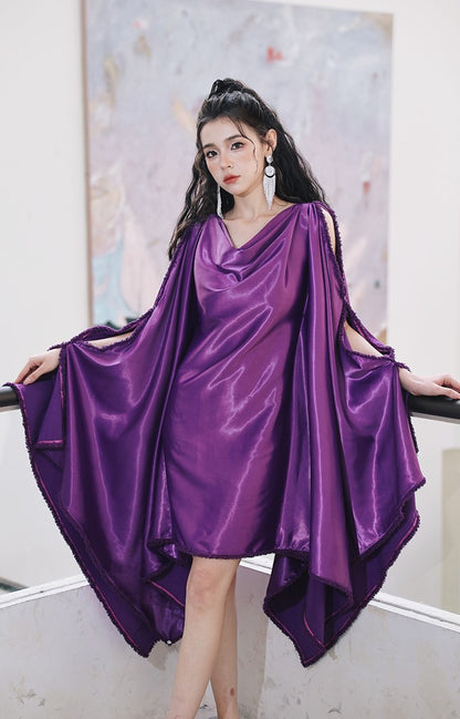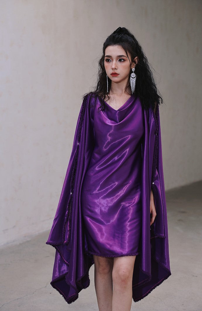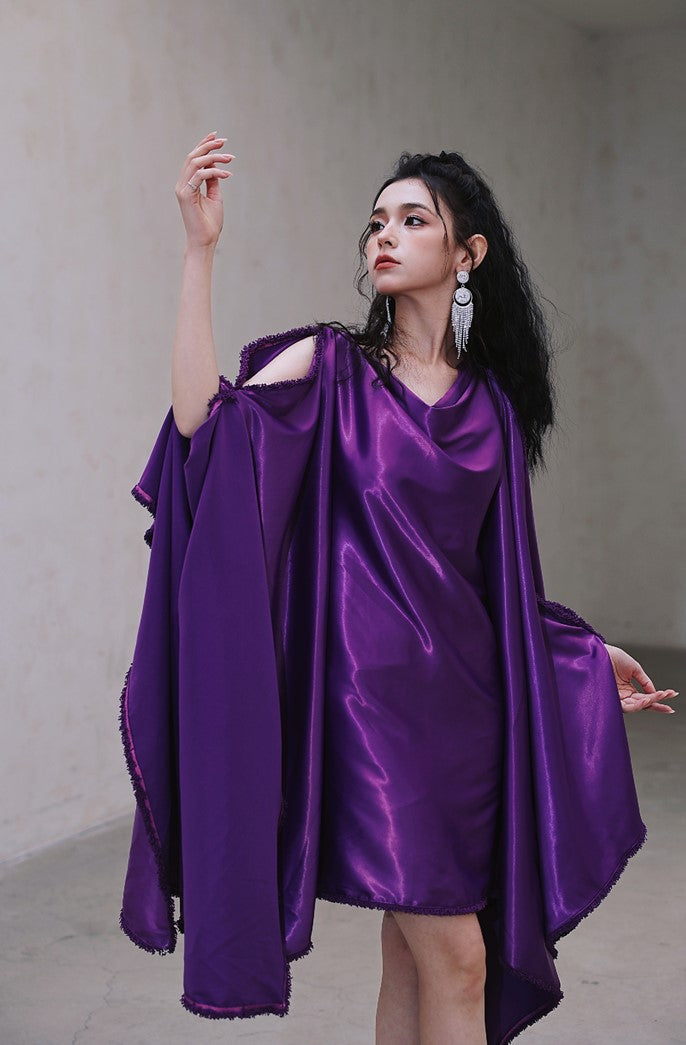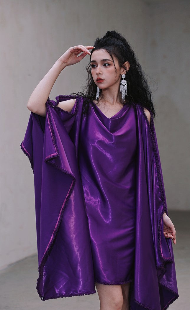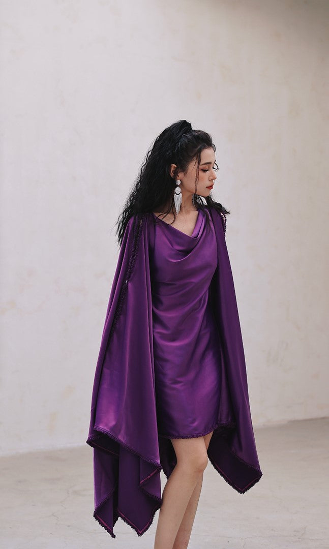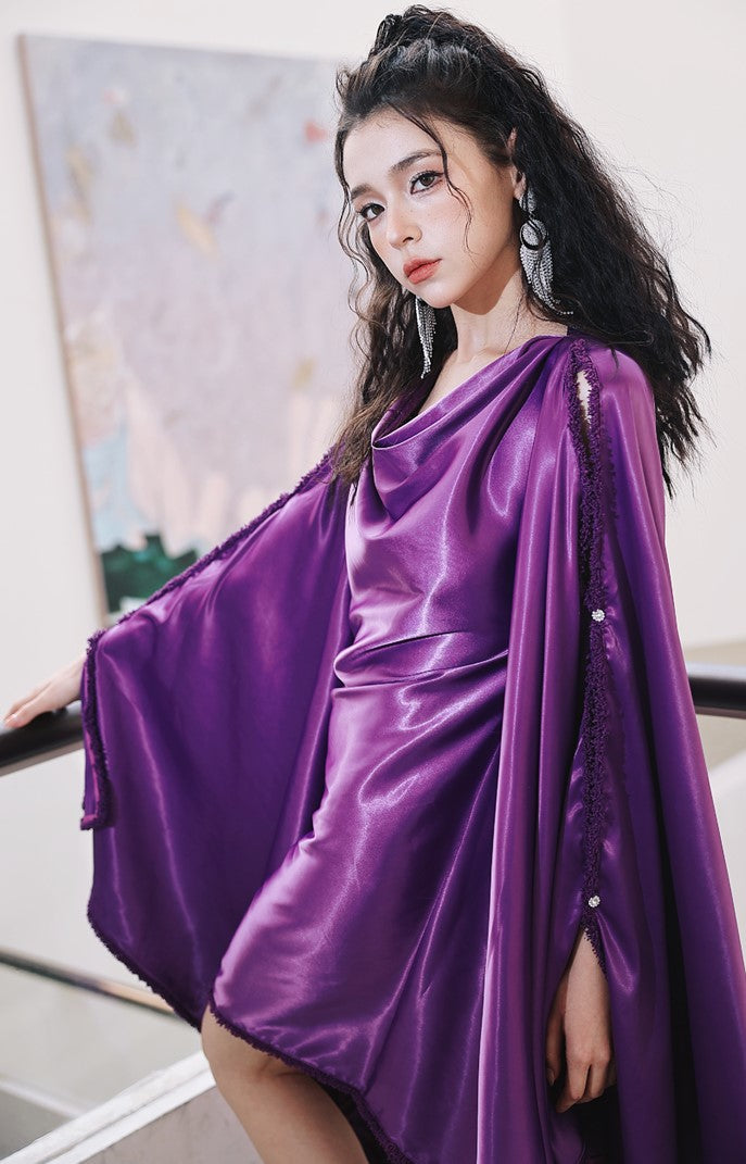 DOLLY Elegant Deep Purple Off Shoulder Swing Collar Short Party Dress-PREETI (V)