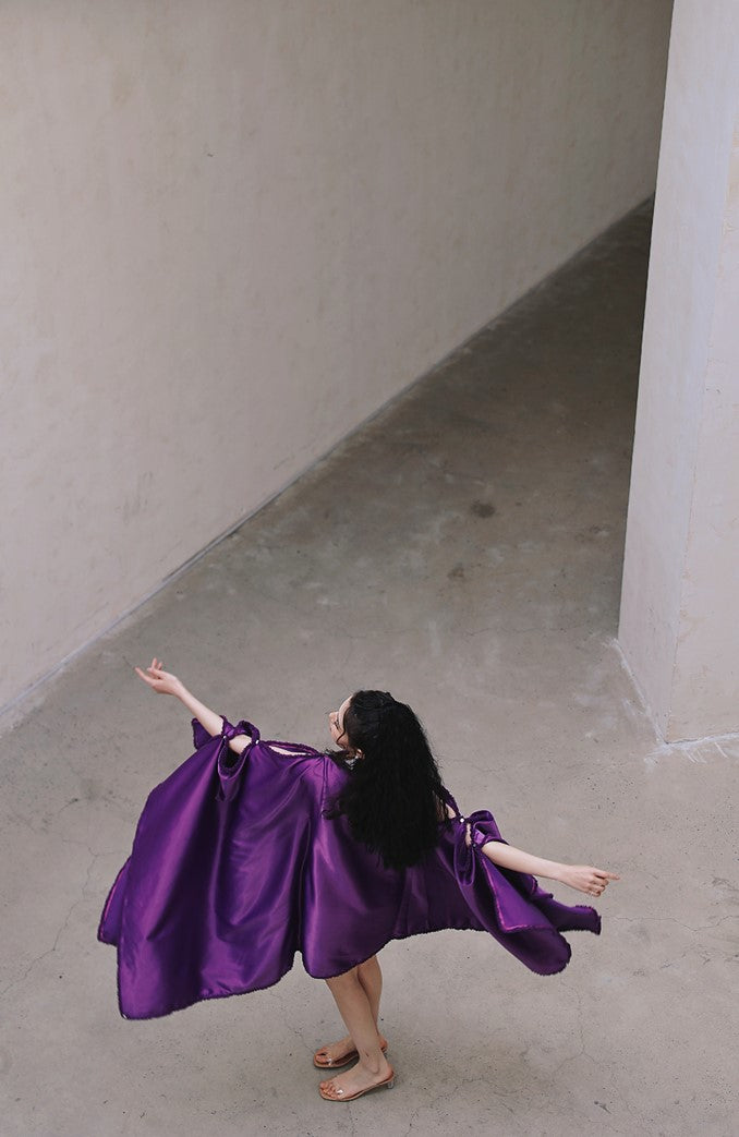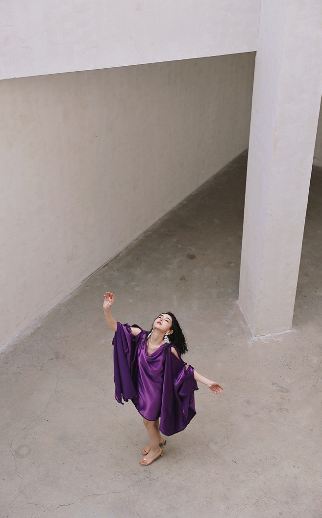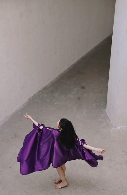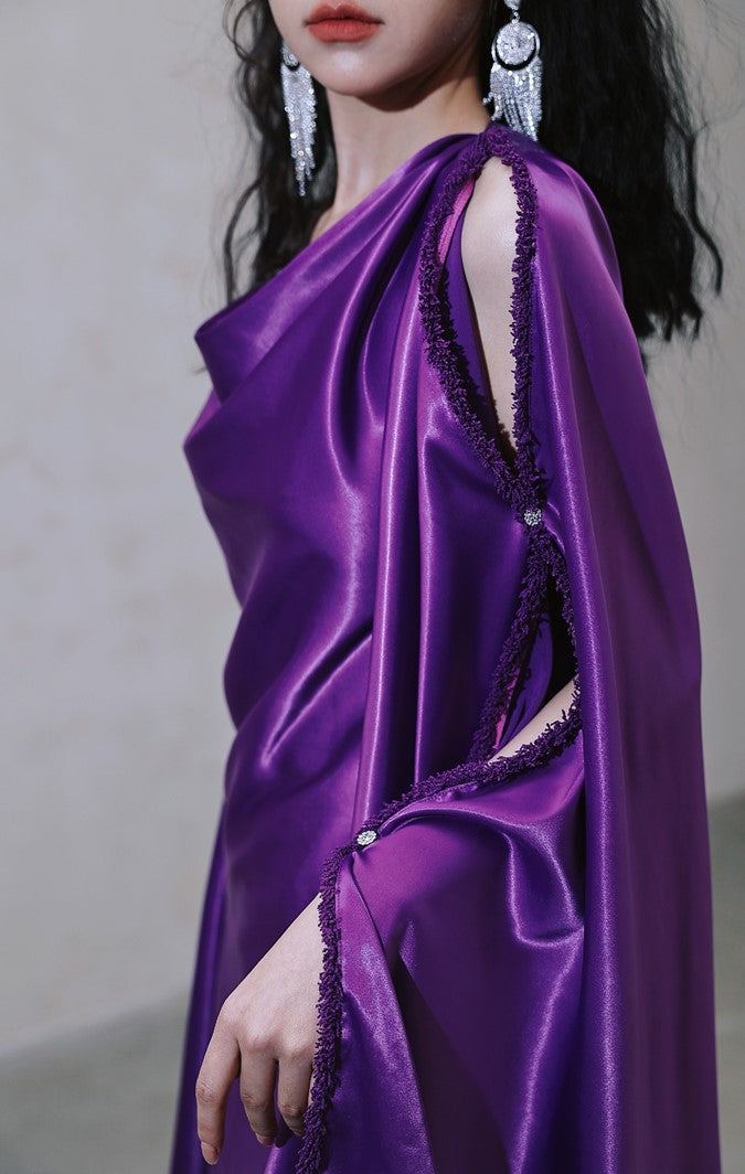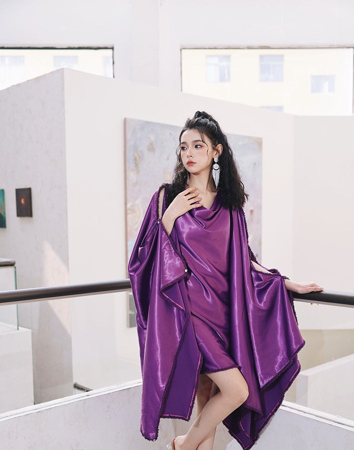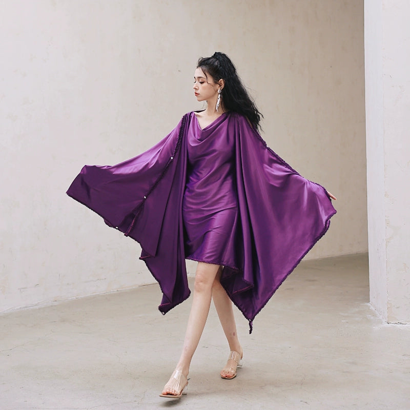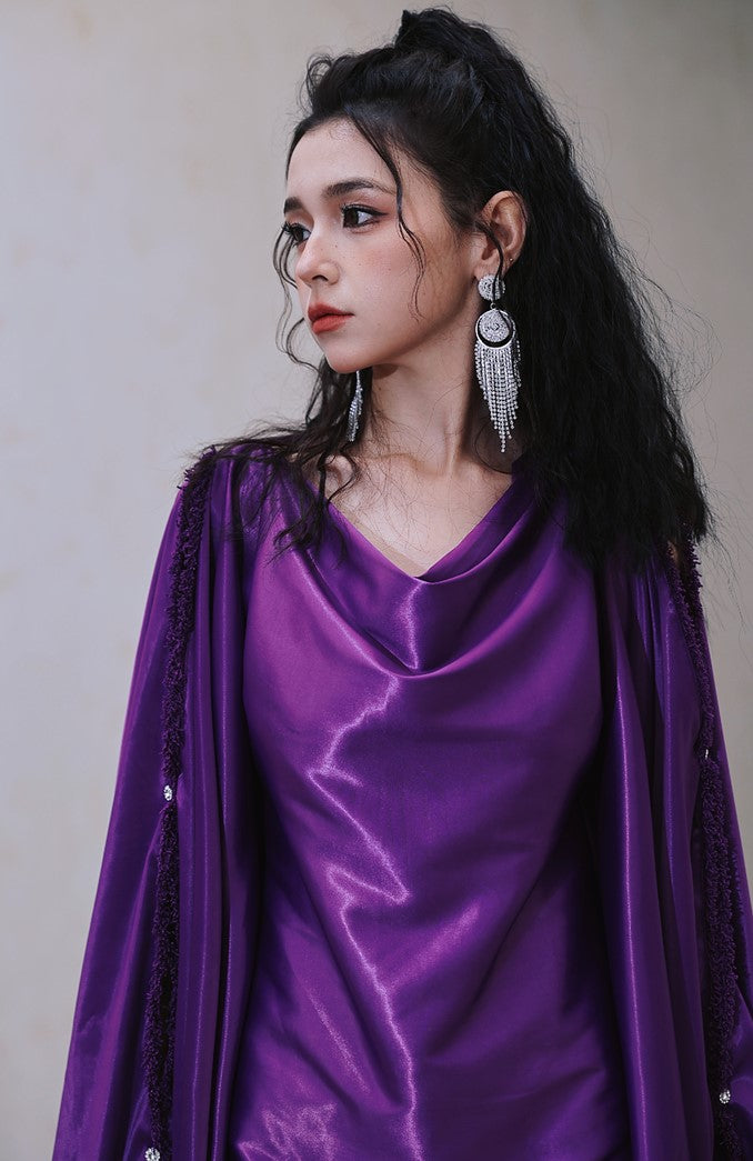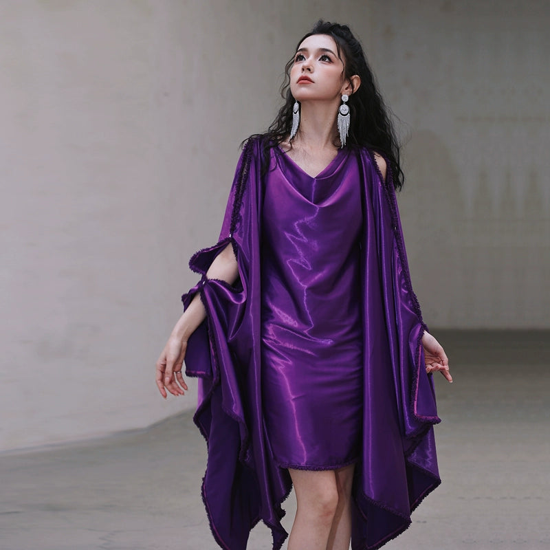 DOLLY Elegant Deep Purple Off Shoulder Swing Collar Short Party Dress-PREETI (V)