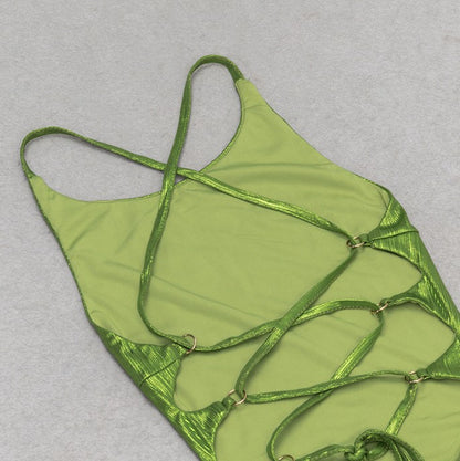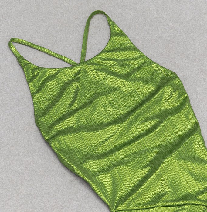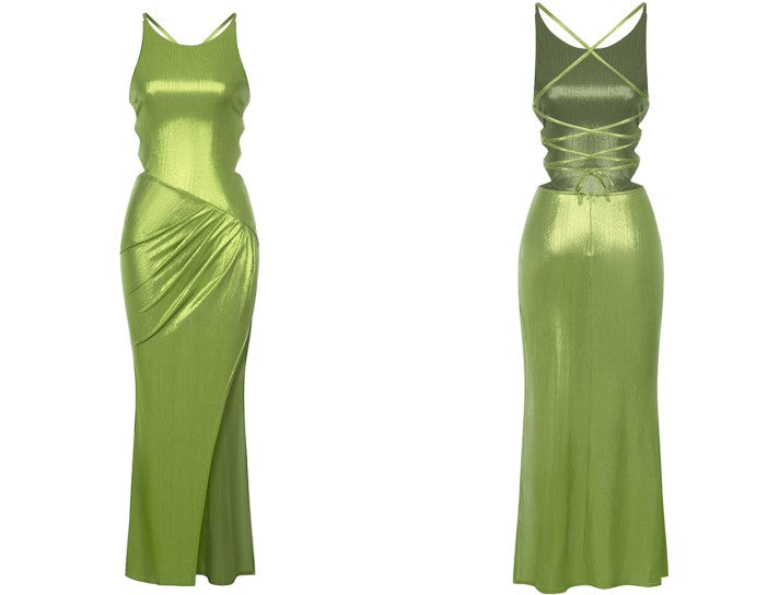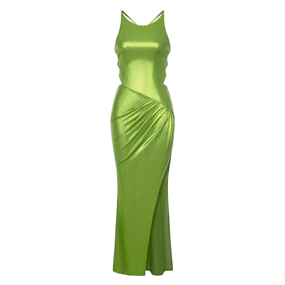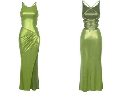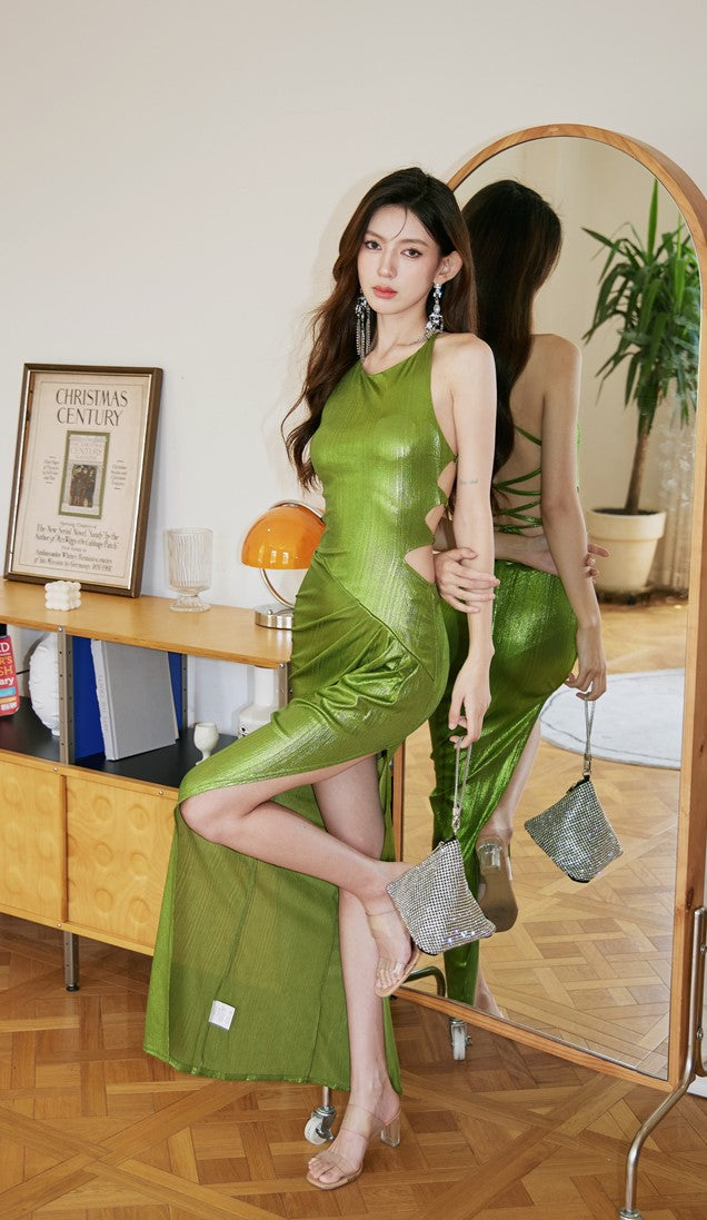 DOLLY Elegant Green Sleeveless Cross Strap Backless Body Hug Slit Party Dress-KLINE (V)