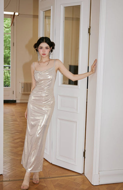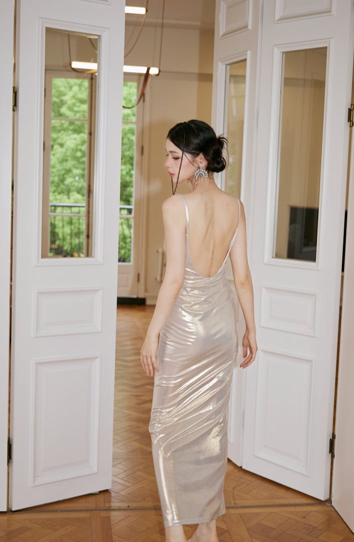 Indulge in your glamorous side with our DOLLY Elegant Off White cocktail dress! With a seductive backless design and flattering crew neck cut, you'll be turning heads at any party. The sleeveless style adds a touch of sophistication, making this dress perfect for any special occasion. Embrace your sexiness and elevate your style with CHANTEL.