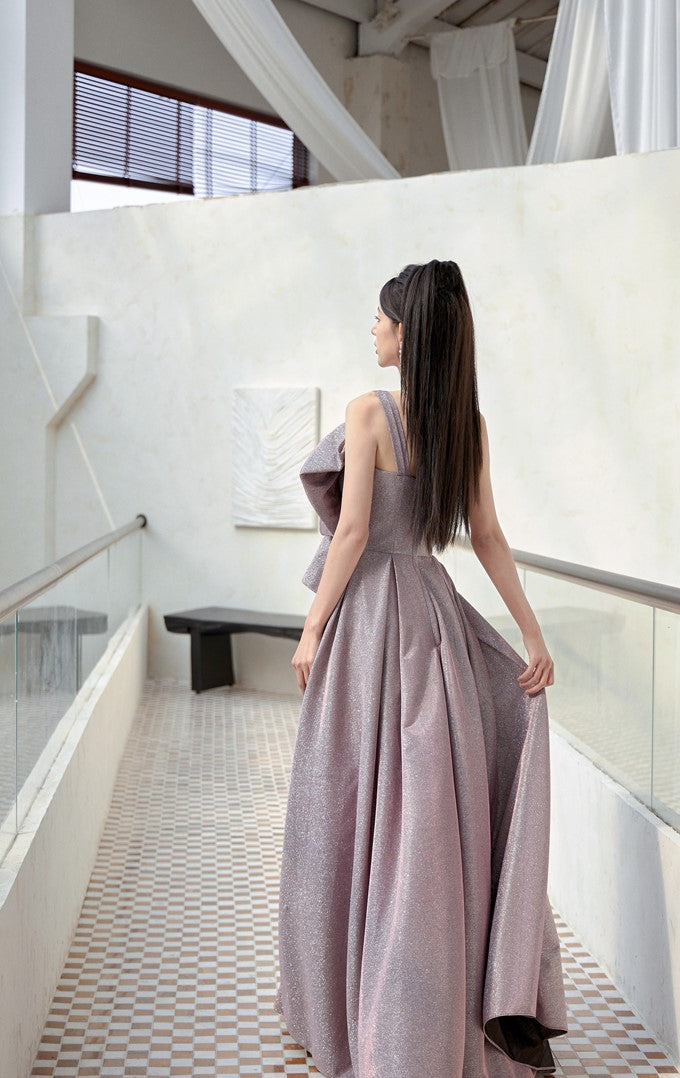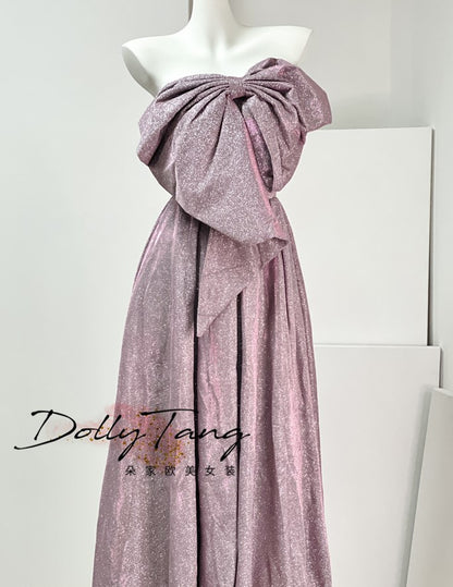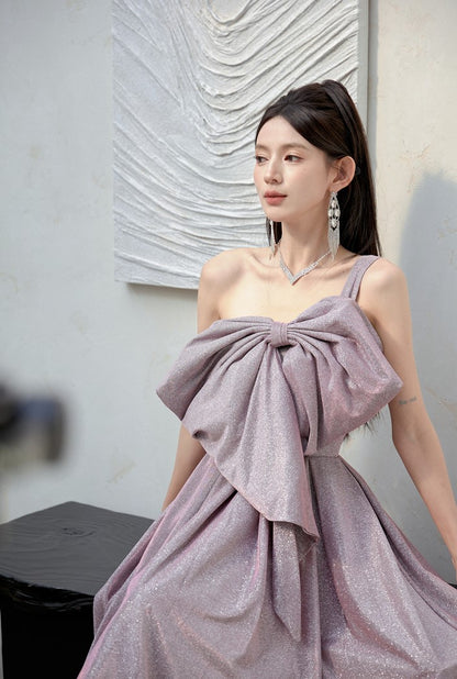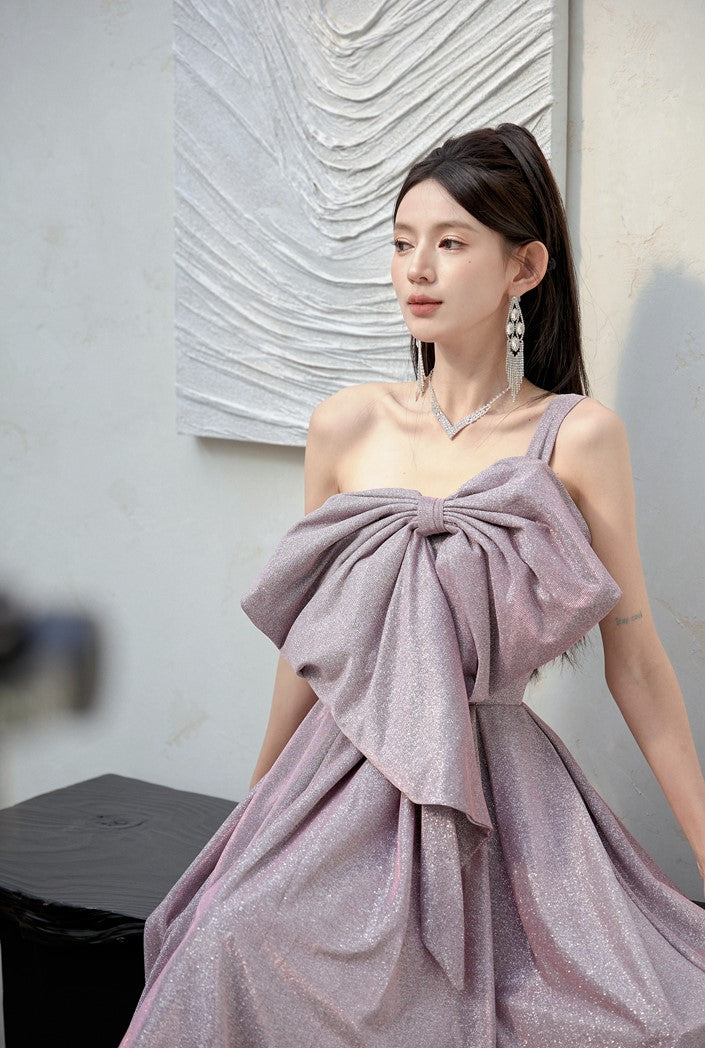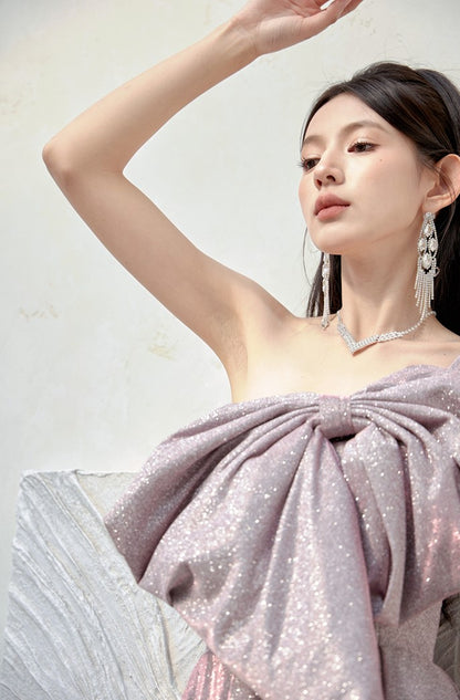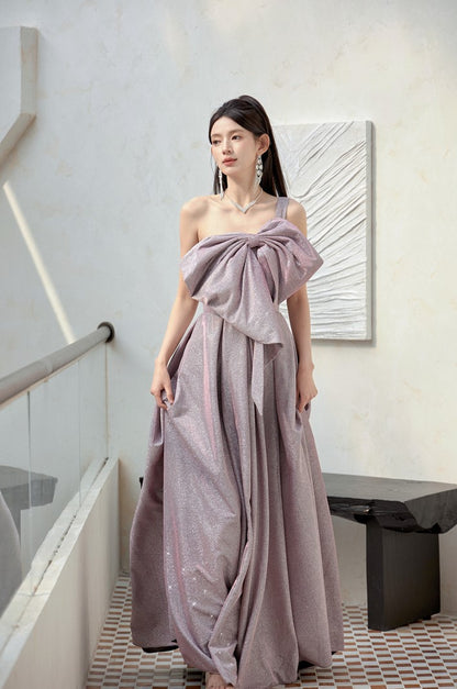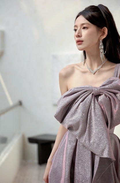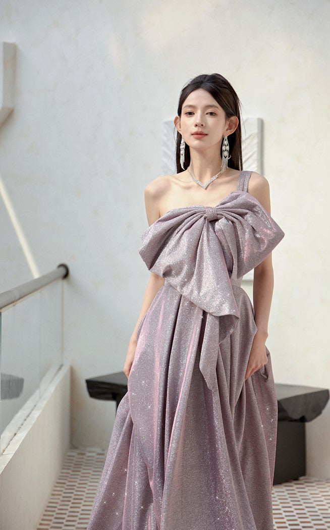 DOLLY Elegant Purple Off Shoulder Bow Sequin Long High Waist Cocktail Dress-TESSA (V)
