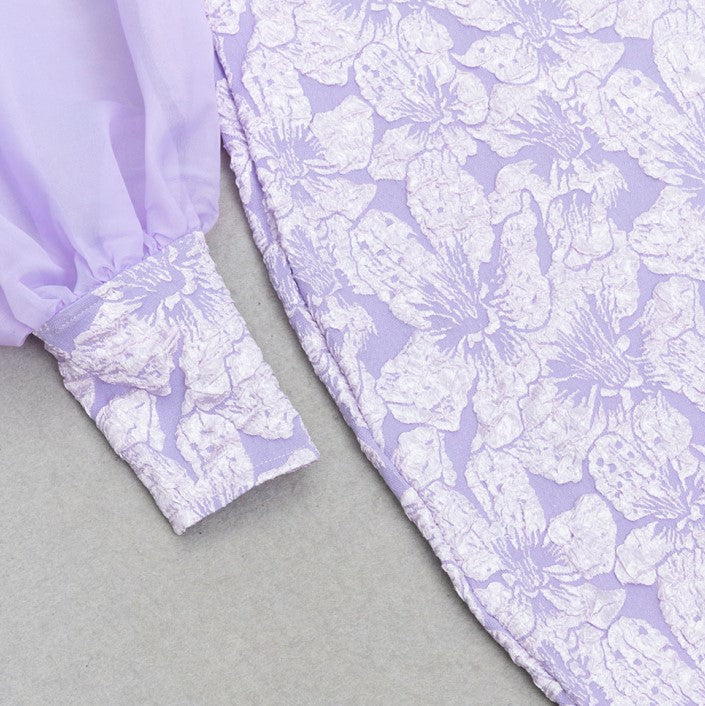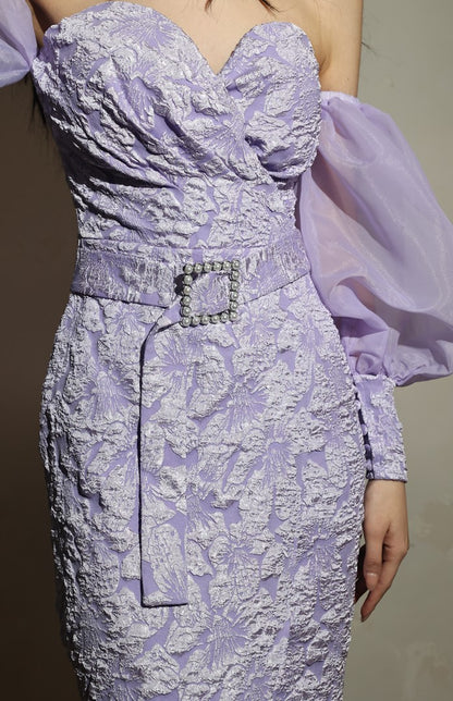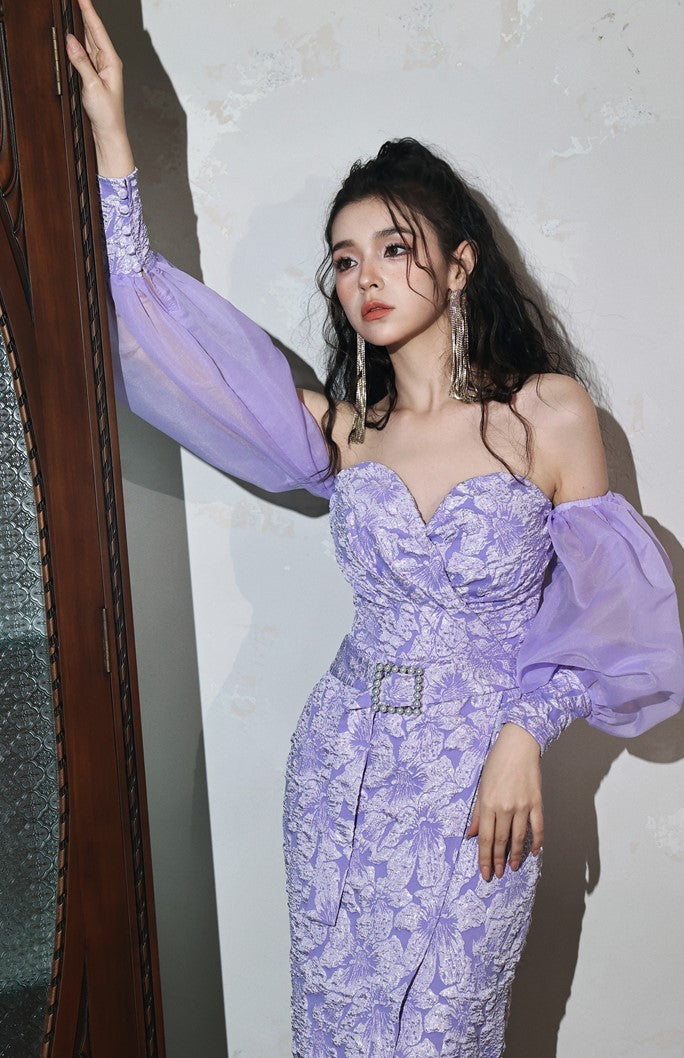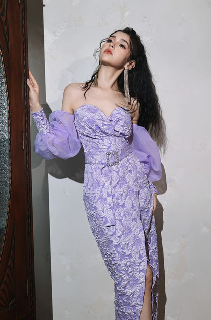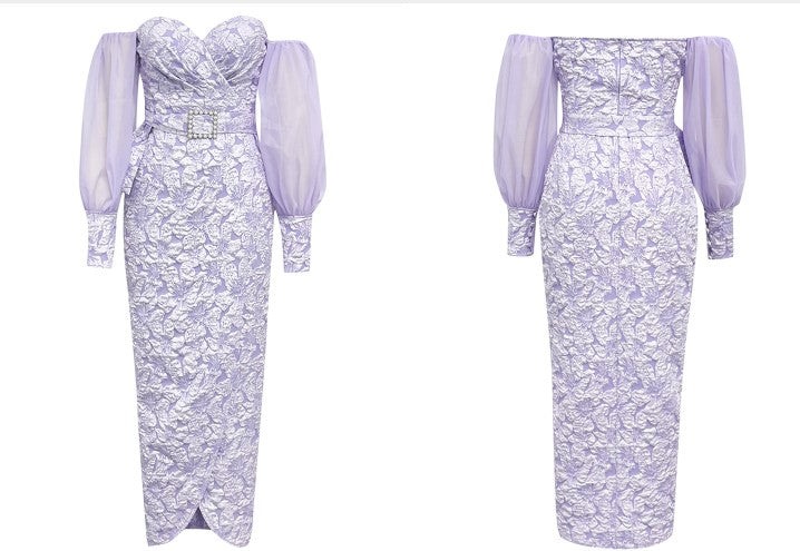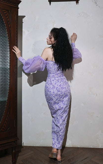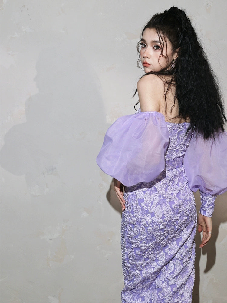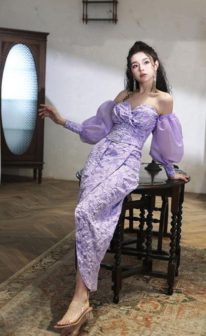 DOLLY Elegant Purple Puff Long Sleeve Off Shoulder High Waist Dinner Dress-GRISLLE (V)