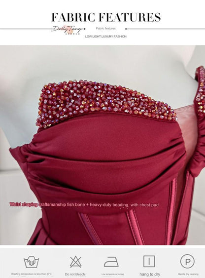 Indulge in luxury with the DOLLY Elegant Red Rhinestone Corset Tube Top Long Slit Cocktail Dress-NIKA (V). This stunning dress exudes elegance and sophistication, perfect for a glamorous night out. With a corset tube top design and a long slit, this dress will make you feel like a true VIP.