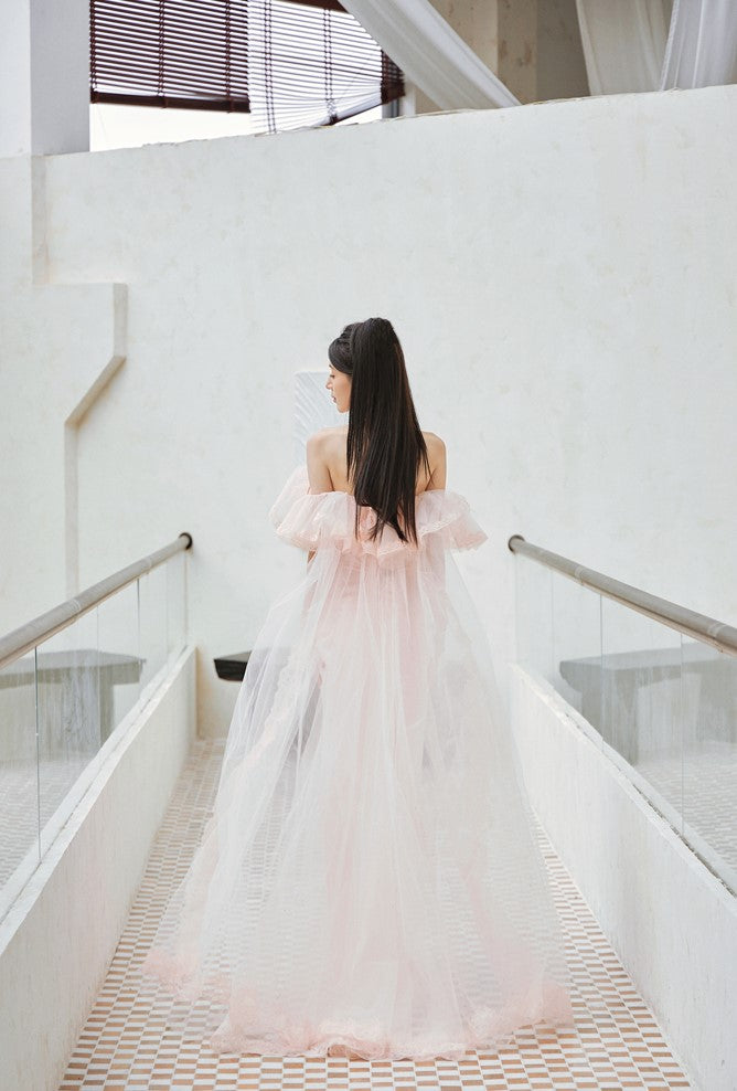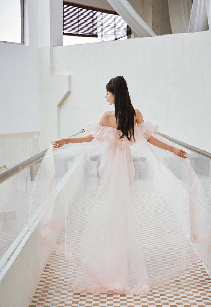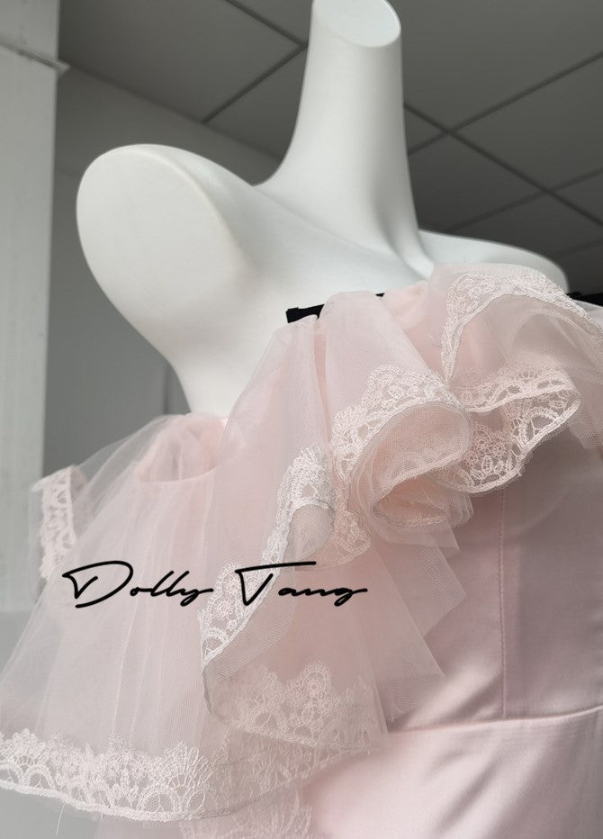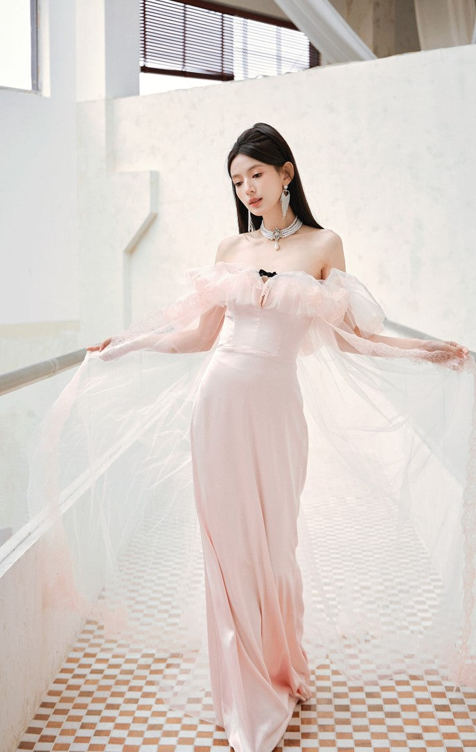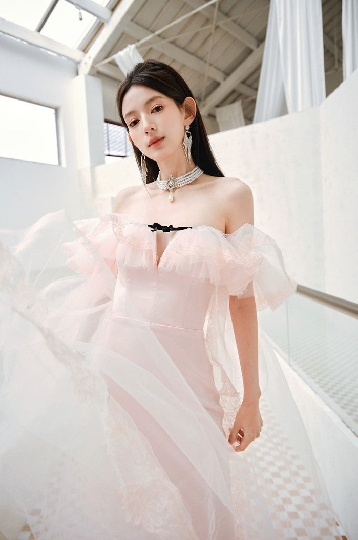 DOLLY Elegant Short Ruffle Sleeves Bandeau High Waist Long Fish Tail Party Dress-JAS (V)
