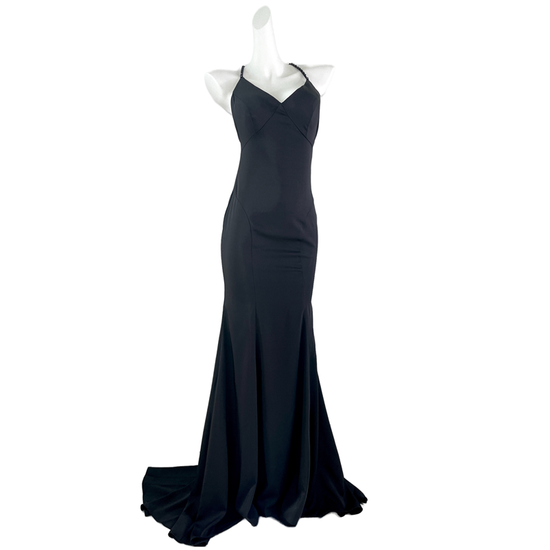 This elegant dinner dress features a sleeveless design that accentuates the figure and a long fish tail silhouette. The sexy design is perfect for any formal occasion. Make a statement with DOLLY's dress.