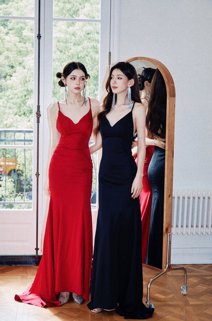 DOLLY Elegant Sleeveless Figure Revealing Long Fish Tail Dinner Dress-BENA
