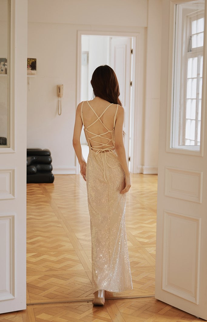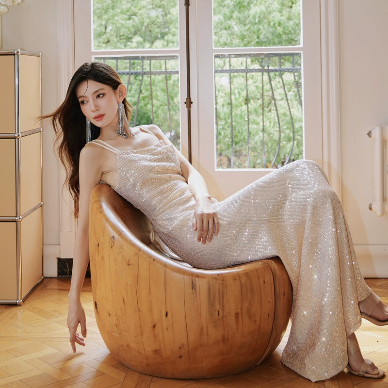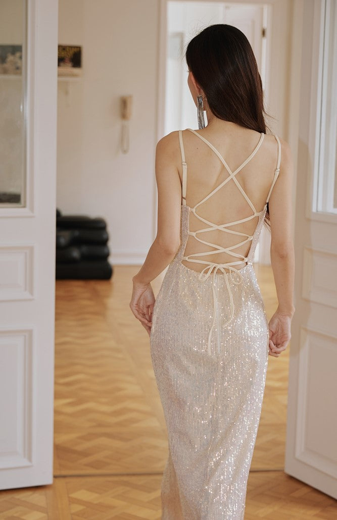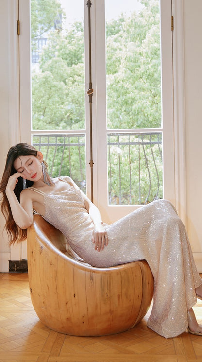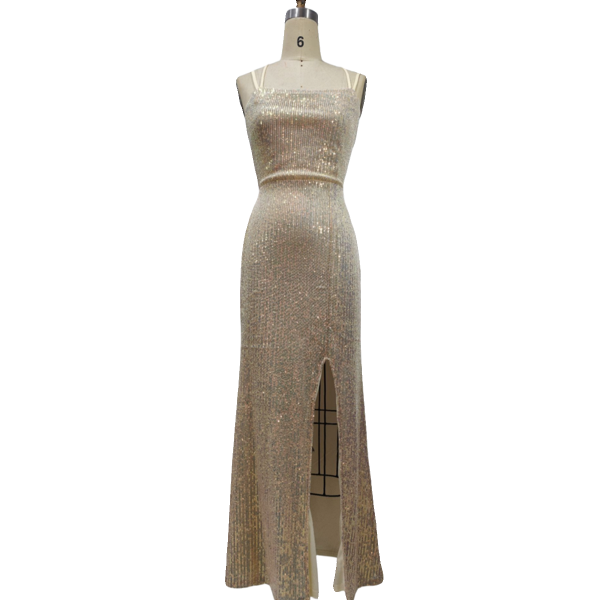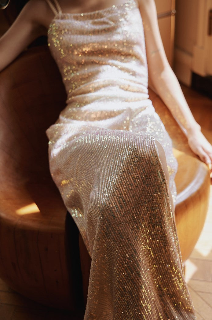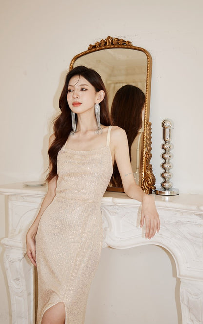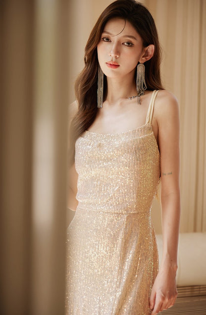 Elevate your style with our DOLLY Elegant Sleeveless Light Sequin Sparkling Sequin Suspender Dress, named BRENDA. This dress is both elegant and sexy, perfect for any occasion. The sparking sequins add a touch of glamour, making you stand out in any crowd. Feel confident and chic in this statement piece.