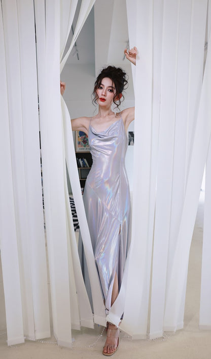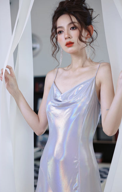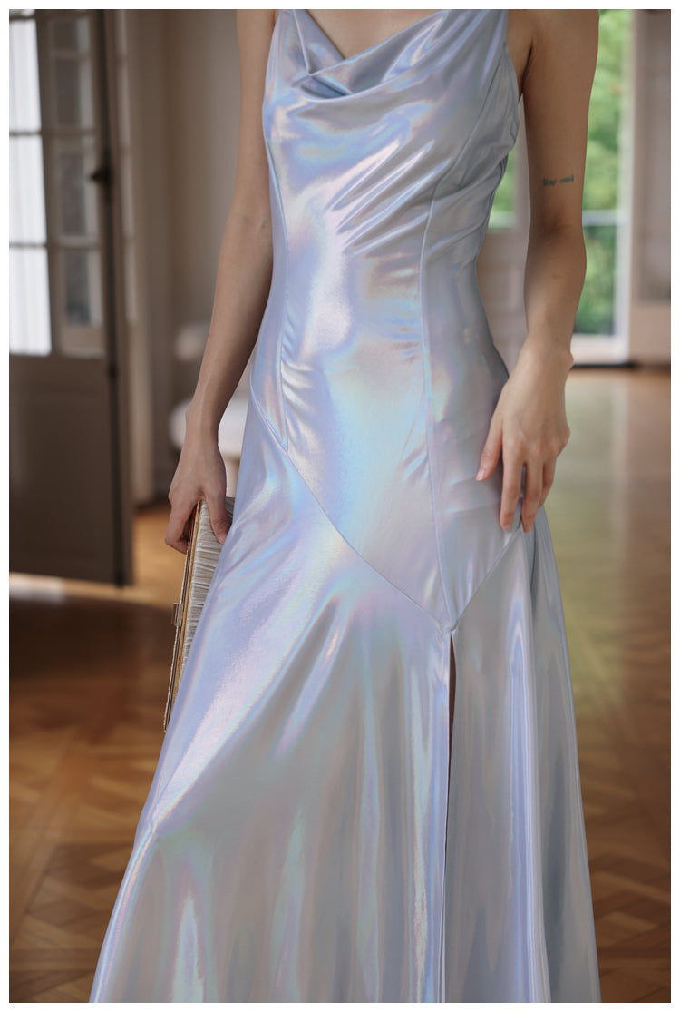 A stunning piece, featuring a beautiful design that will make you stand out at any party. With its elegant swing collar and sleeveless design, this dress depicts beauty and style. Make a statement and turn heads with this must-have dress.