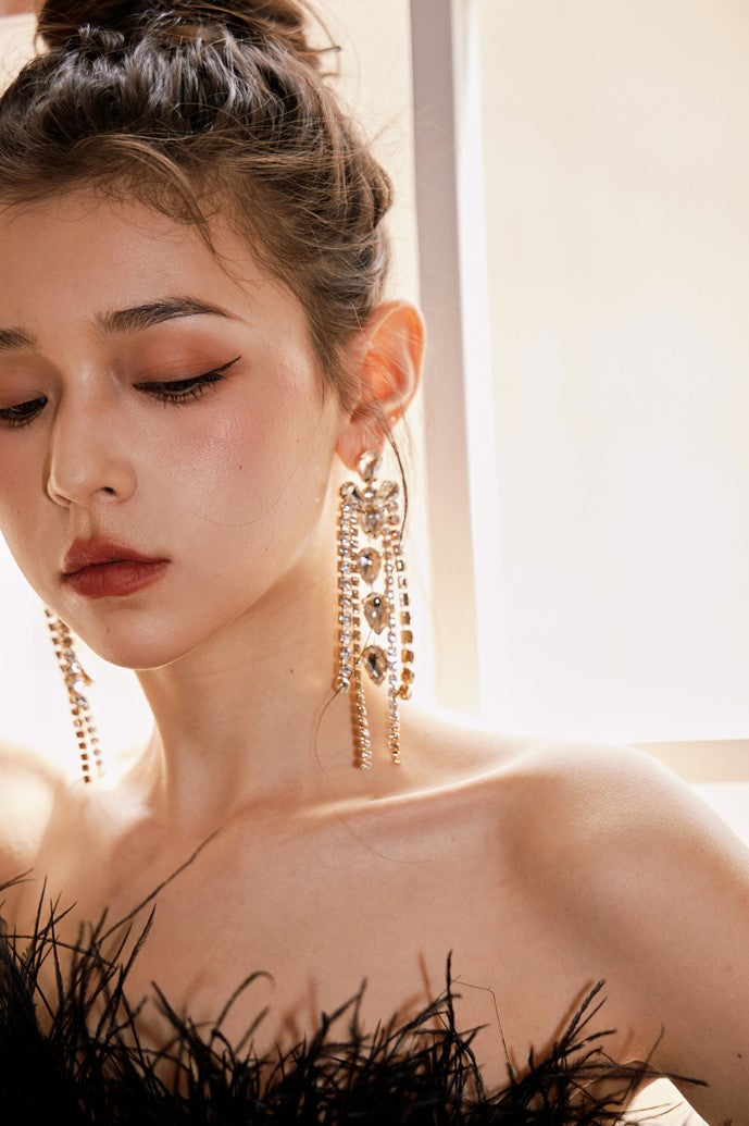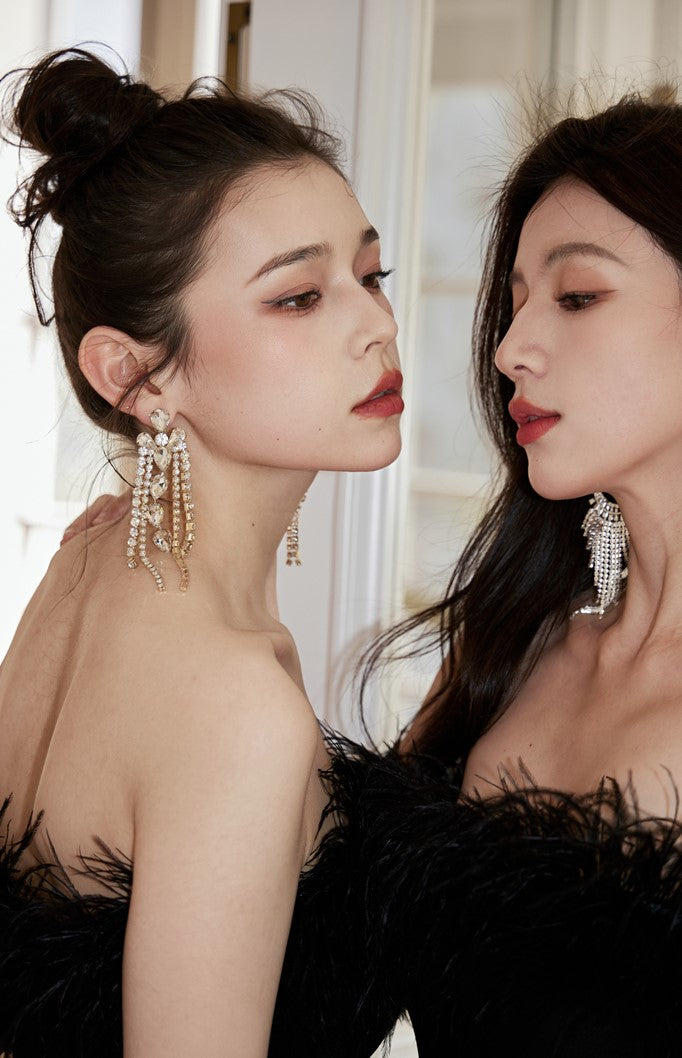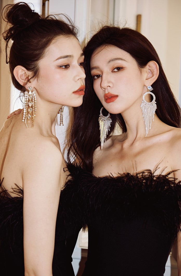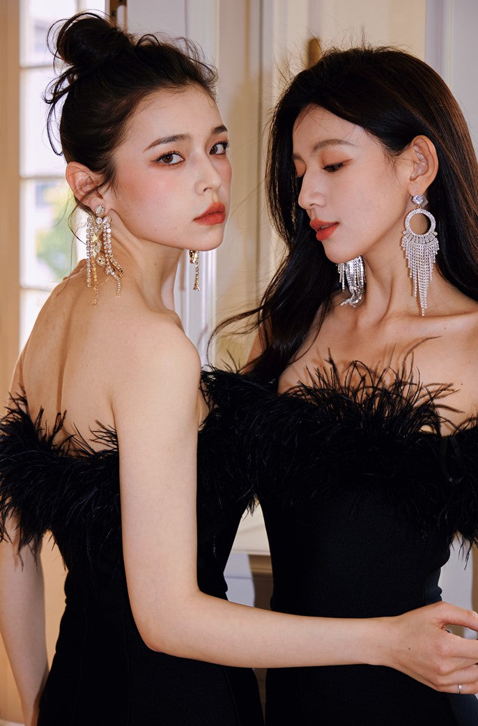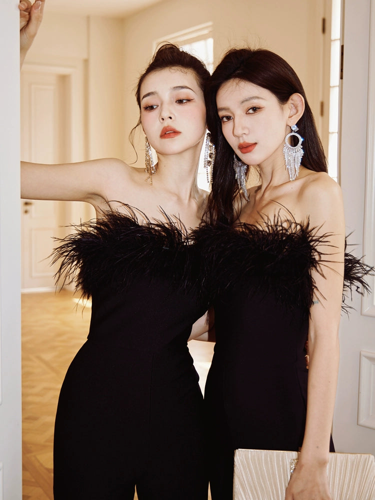 DOLLY High End Black Sleeveless Feather Tube Top Long Flared Pant Jumpsuit-PALMER