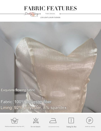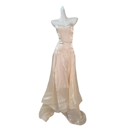 Indulge in luxury and elegance with our DOLLY High End Cream Wedding Dress. The sleeveless bandeau design and high waist accentuate your figure, while the intricate detailing adds a touch of sophistication. Be the epitome of style on your special day with this gorgeous dress.
