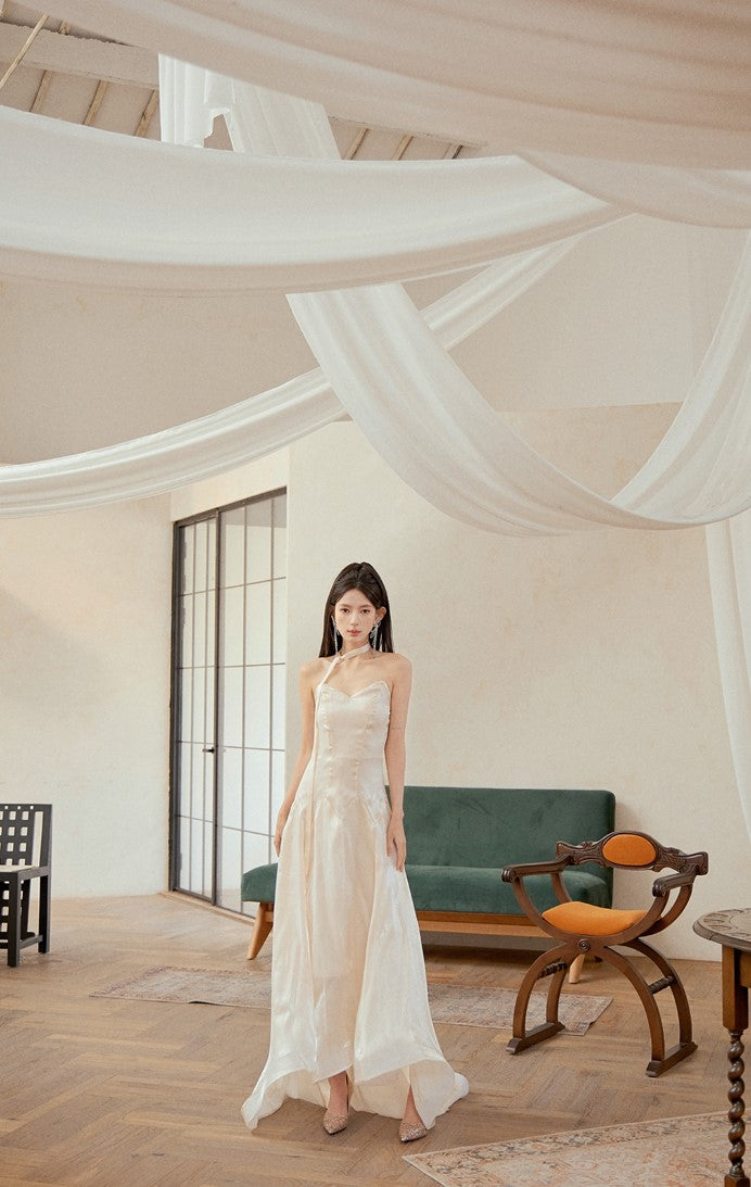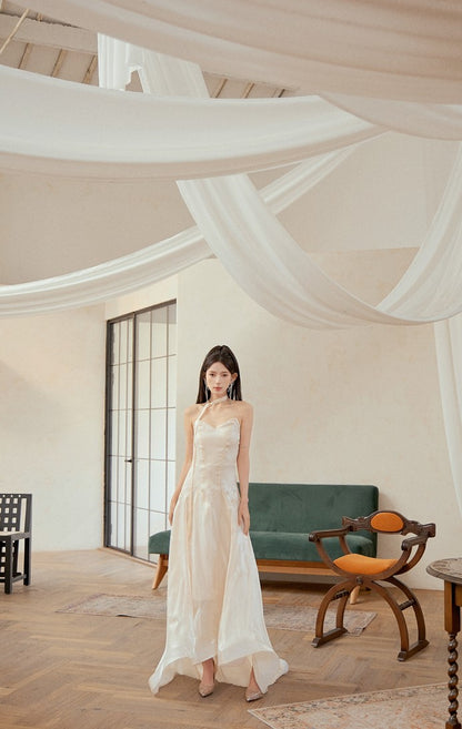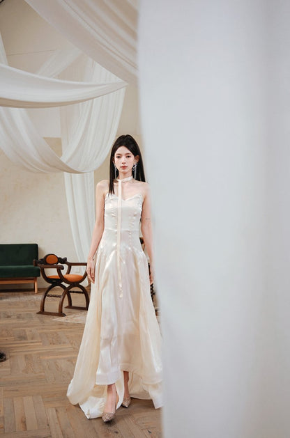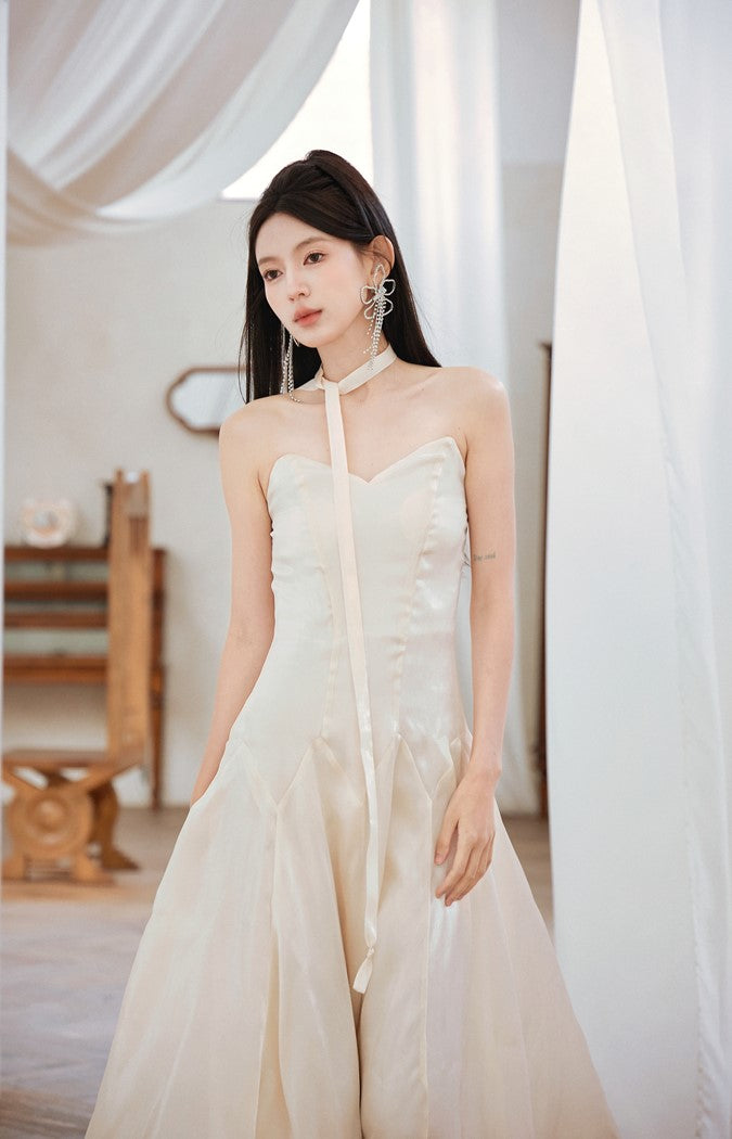 DOLLY High End Cream Sleeveless Bandeau High Waist Wedding Dress-SONNI (V)