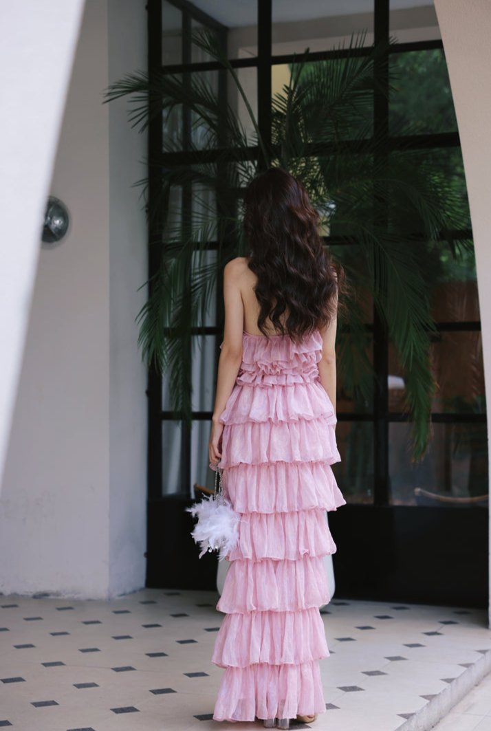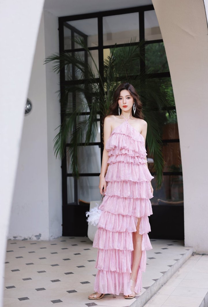 Get ready to turn heads in our DOLLY High End Pink Dress! Perfect for any holiday party, this sleeveless dress features a loose and flowy fit, a halter neckline, and a beautiful long cake design. You'll feel like a resort queen in this dress!