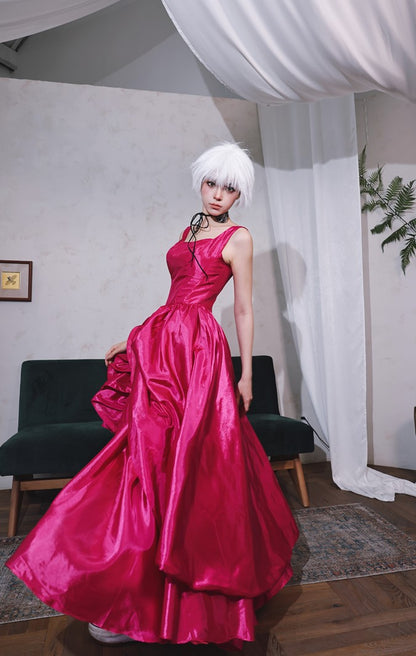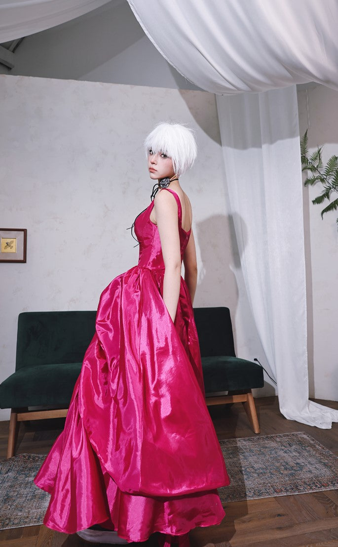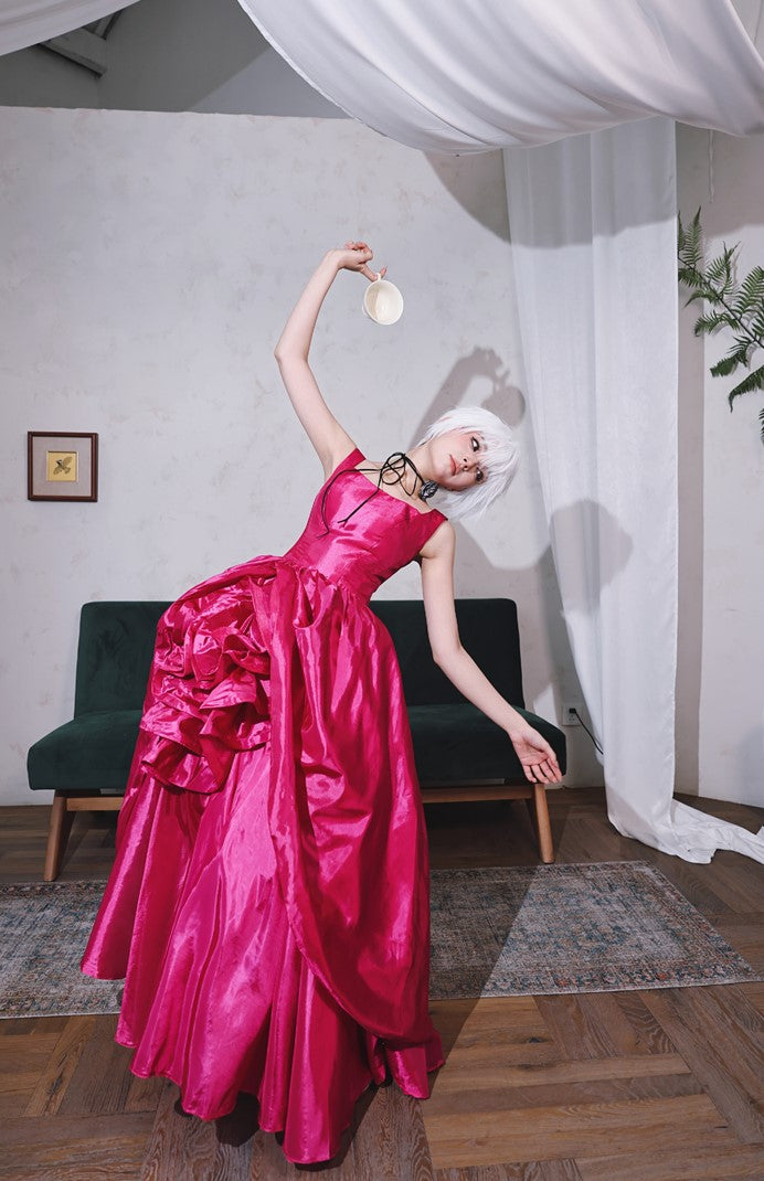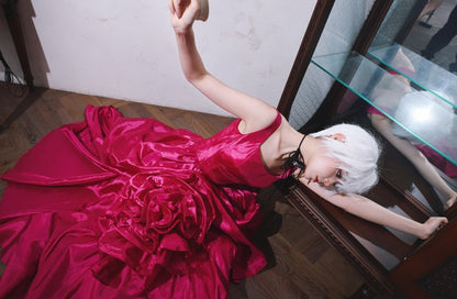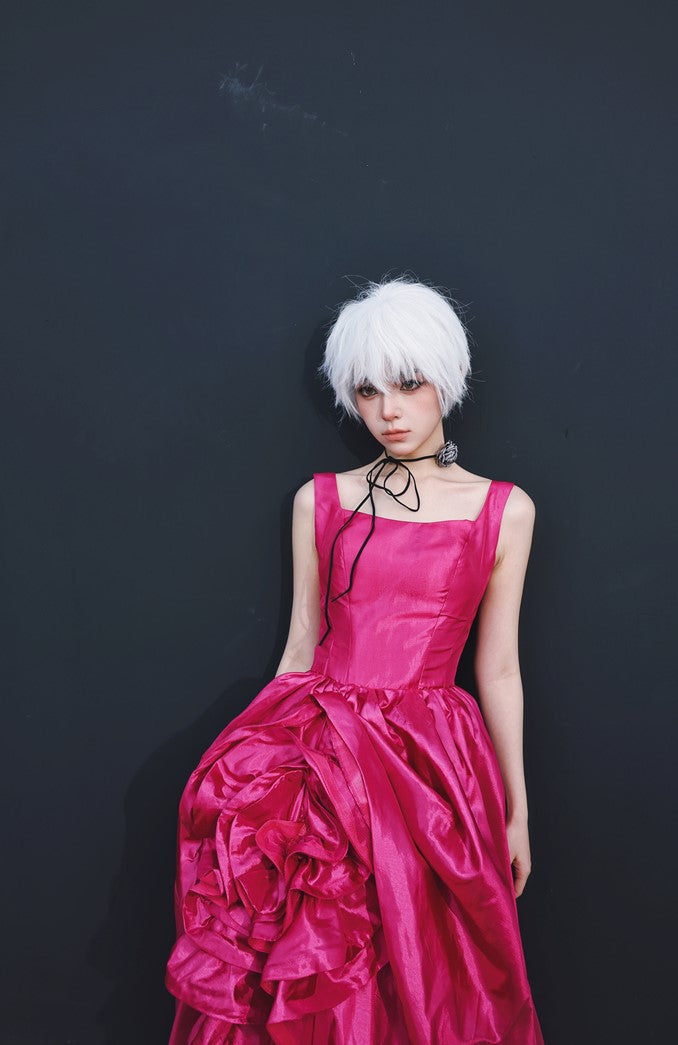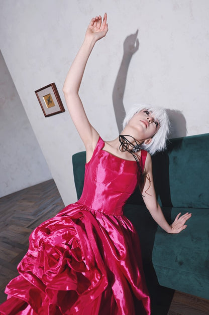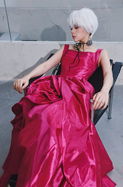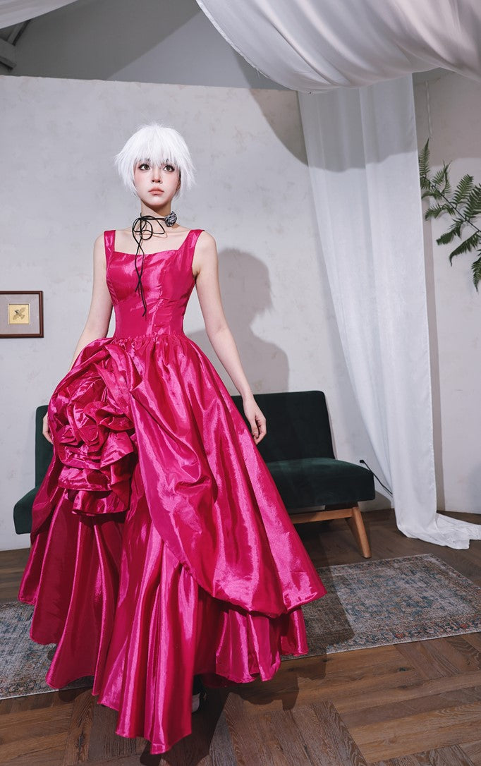 DOLLY High End Rose Square Collar Sleeveless Handmade Flower Long Dinner Dress-RITA