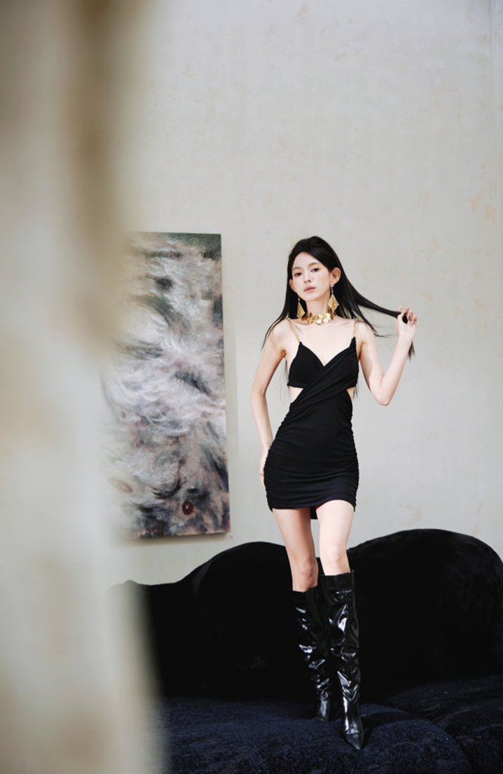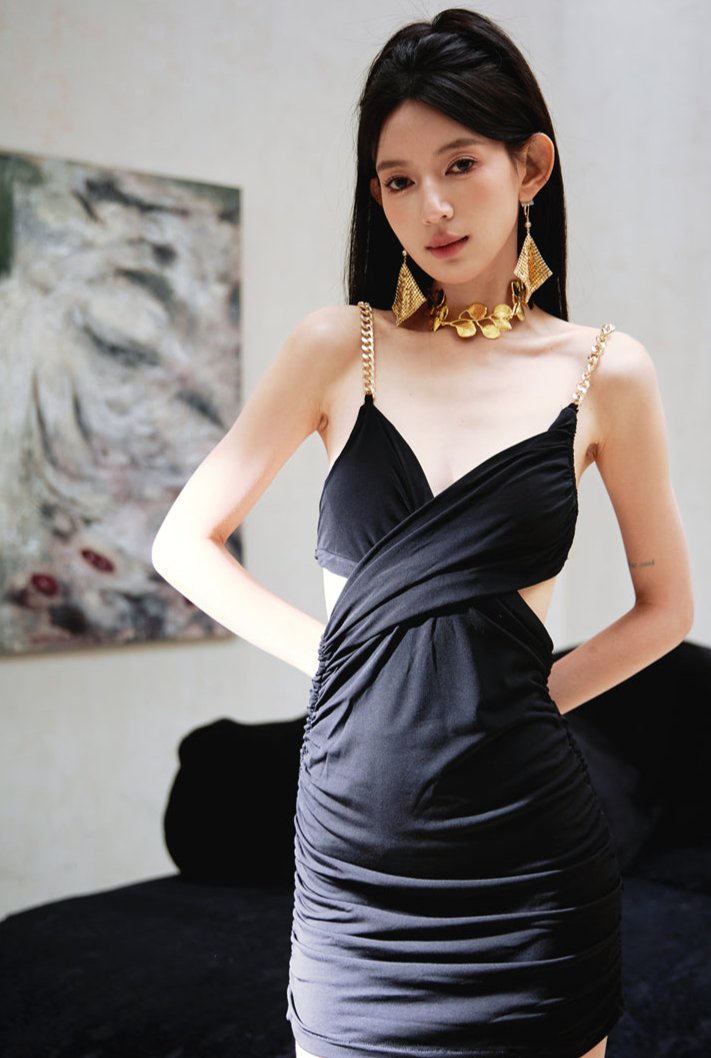 This sexy party dress from DOLLY is the epitome of luxury. With its revealing black skin and hip-hugging fit, the dress is perfect for any special occasion. Make a statement with confidence and style in this must-have dress, designed for a night to remember.