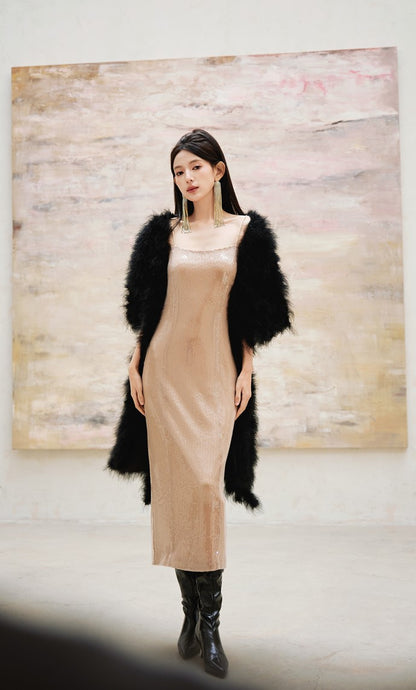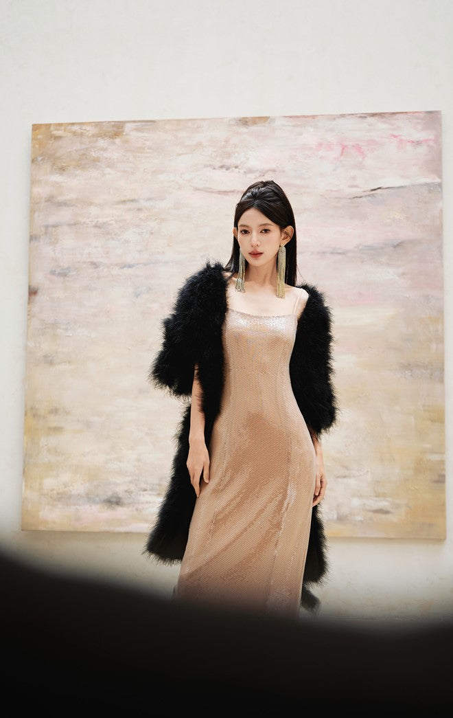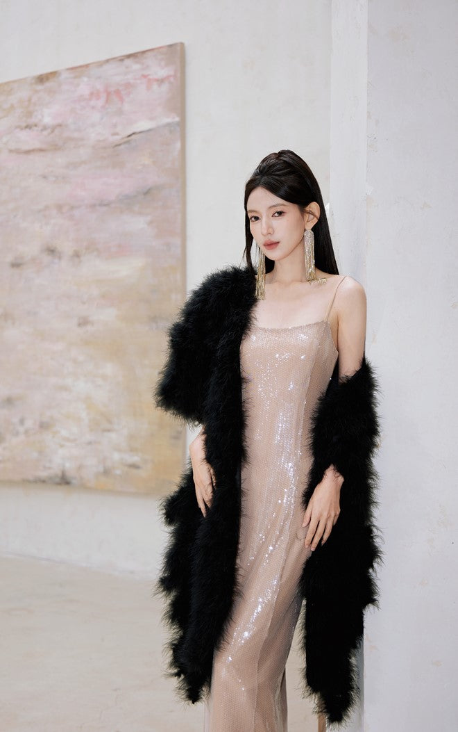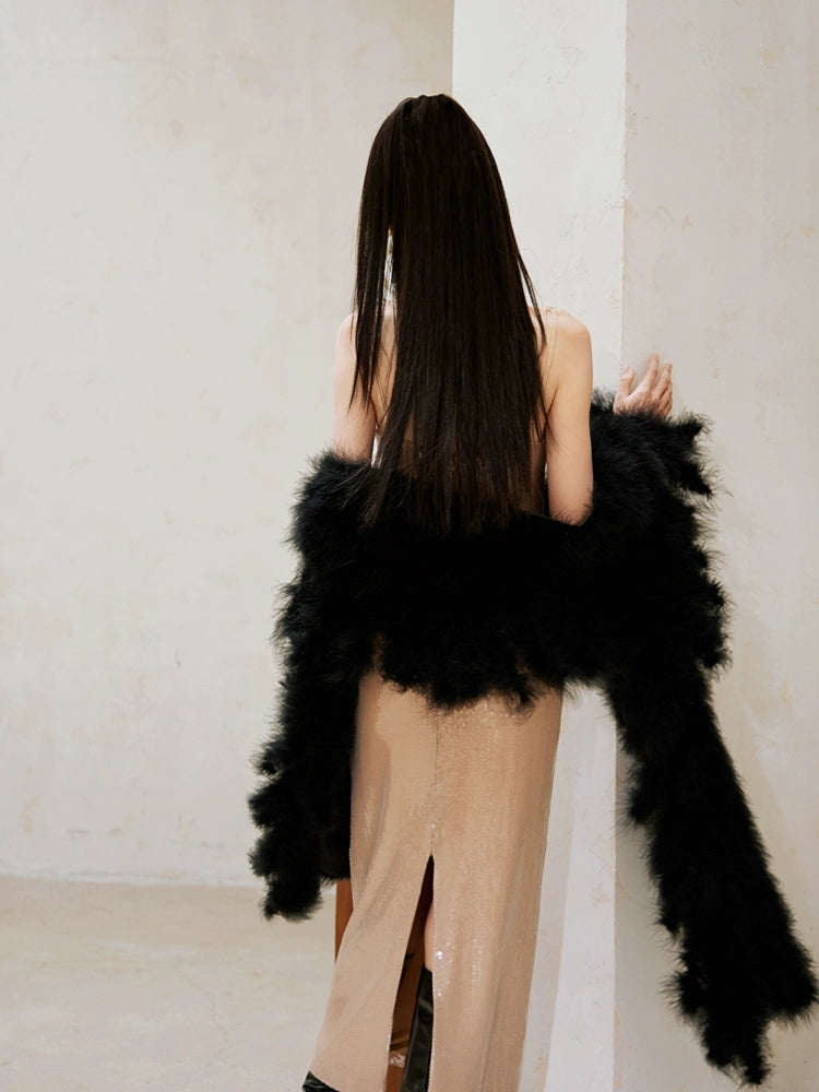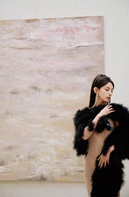 DOLLY Luxury Feather Fluffy Fur Tassel Chic Shawl-NANA