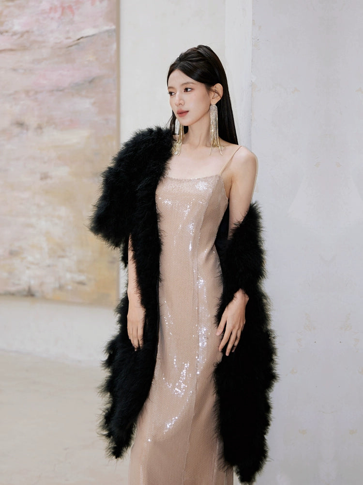 This DOLLY shawl is the epitome of elegance and luxury. With its chic design and fluffy feather fur tassel, it is the perfect accessory for any formal or special occasion. Keep yourself warm and stylish with this must-have piece. (v)