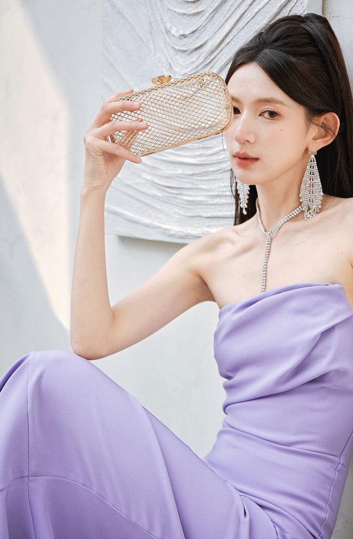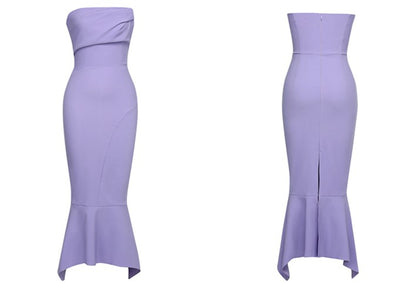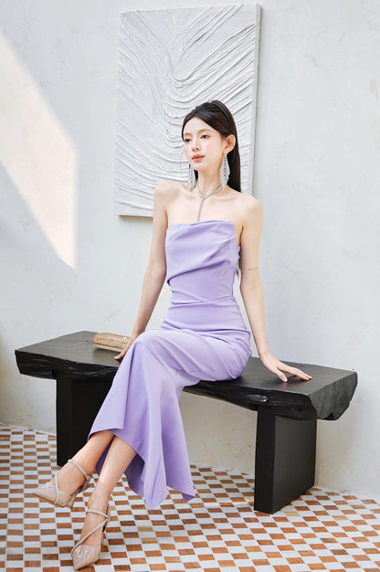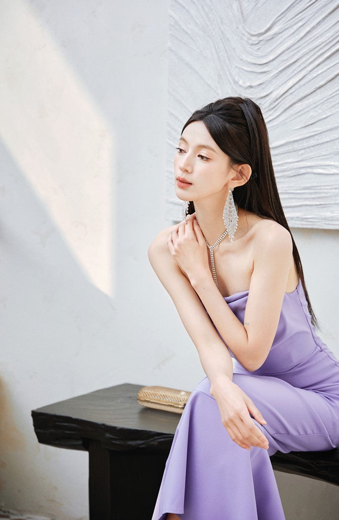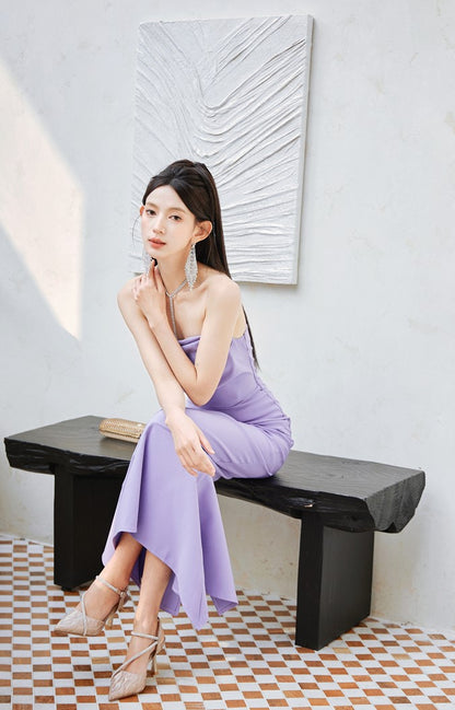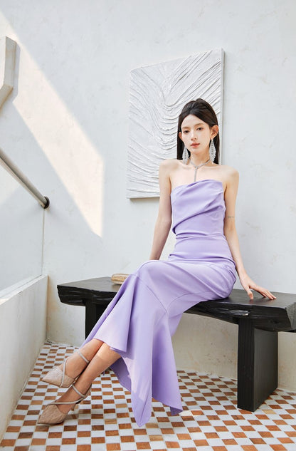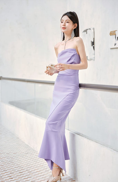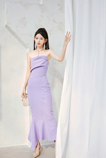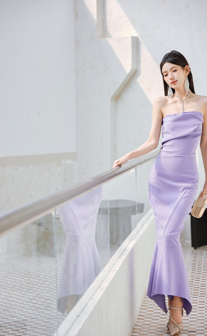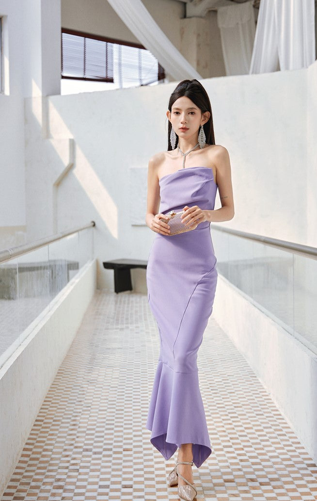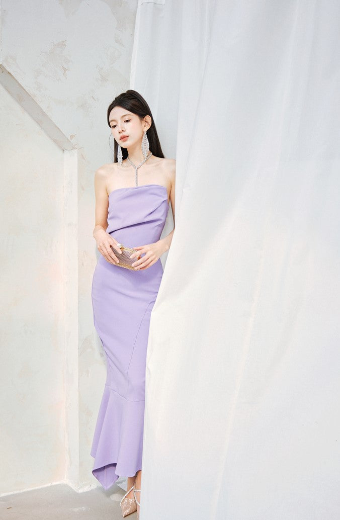 DOLLY Luxury Light Purple French Style Taro Tube Top Fishtail Dress-ALERO