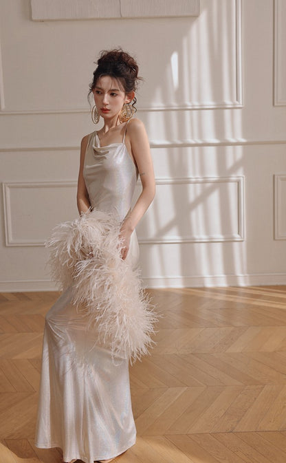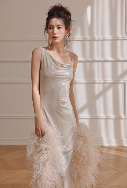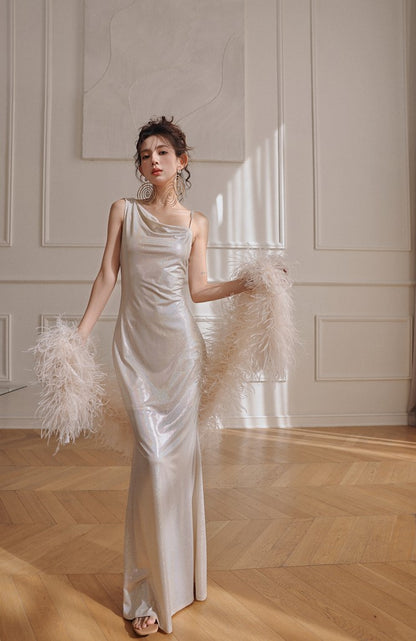 DOLLY Luxury Sliver Sleeveless Glitter Slim Fit Long Banquet Dress-SWATTIE