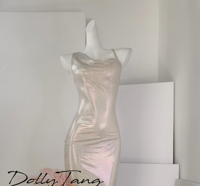Achieve an elegant and classy look with the DOLLY Luxury Sliver Sleeveless Glitter Slim Fit Long Banquet Dress-SWATTIE. Made with shimmering glitters, this dress will give you a glamorous and sophisticated appearance. Perfect for any formal event, this dress guarantees to make you stand out with its stunning design.