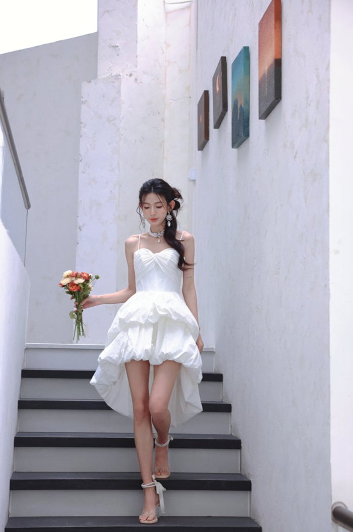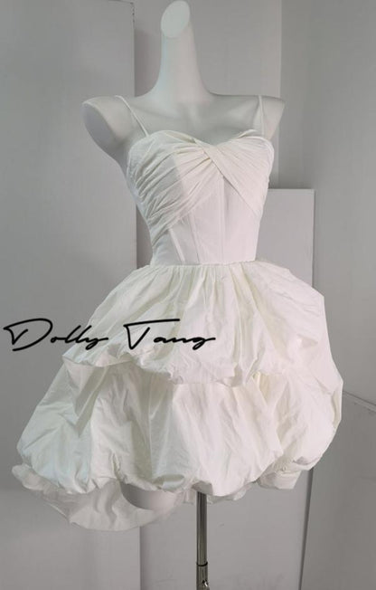 DOLLY Luxury White Sleeveless Short Puffy Chic Birthday Dress-YOYO