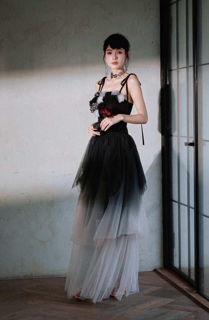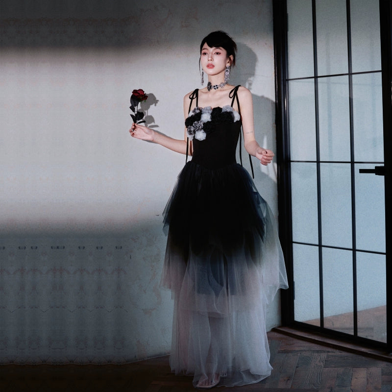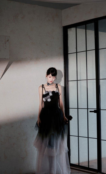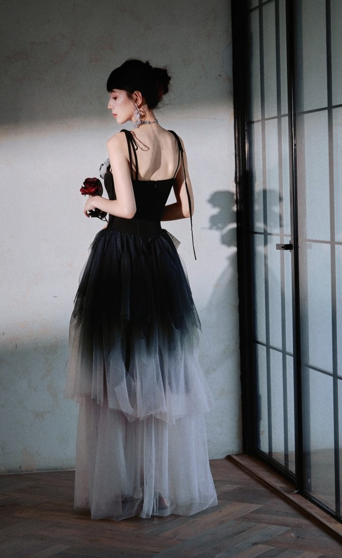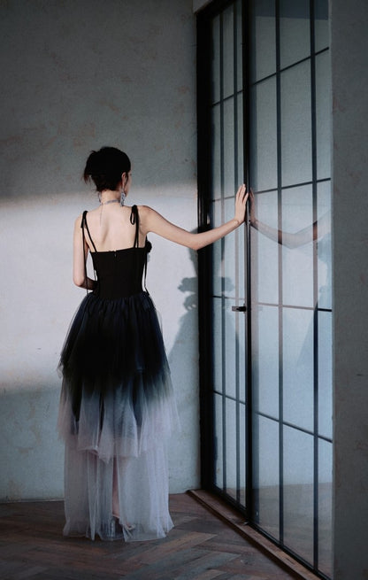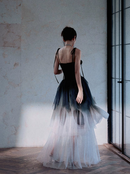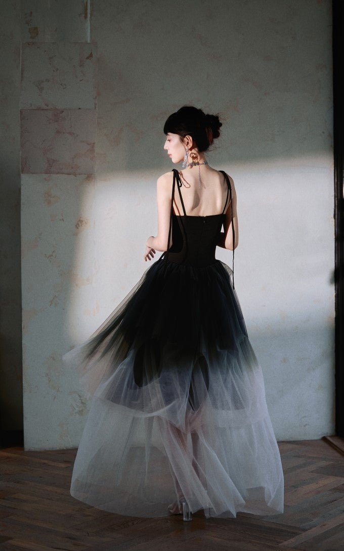 DOLLY Elegant Black Gradient French Style Suspender Irregular Prom Dress-Marcia (V)