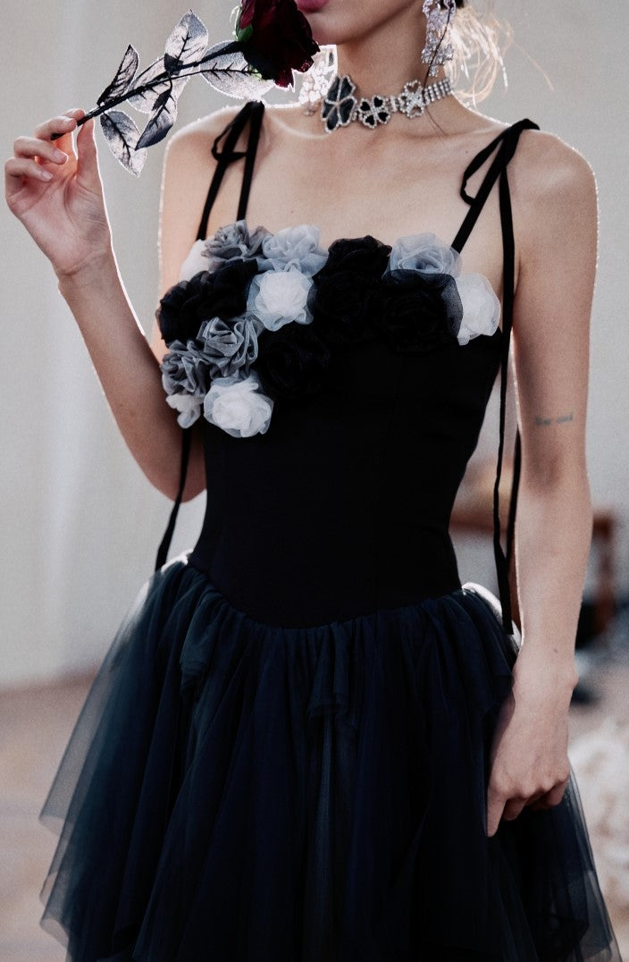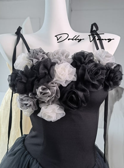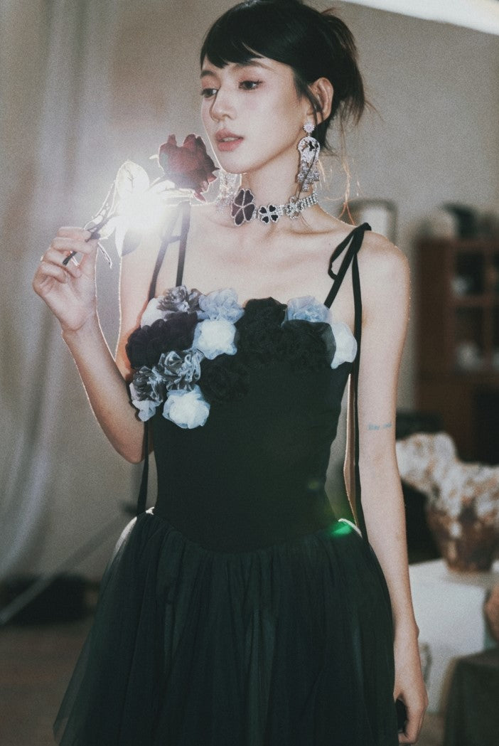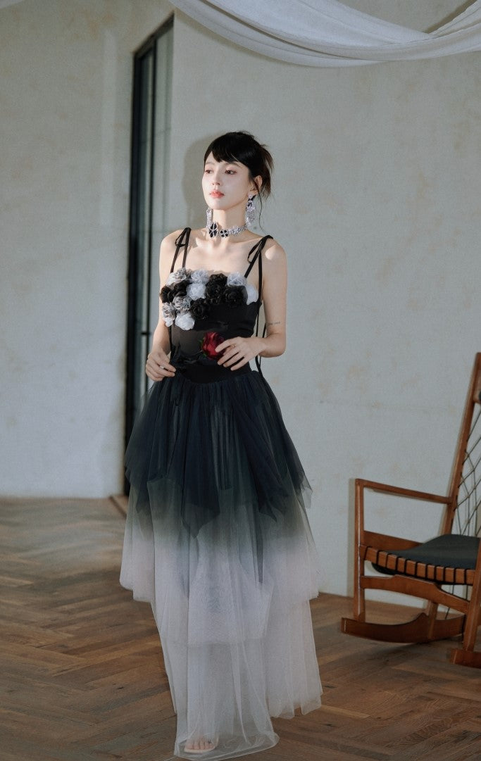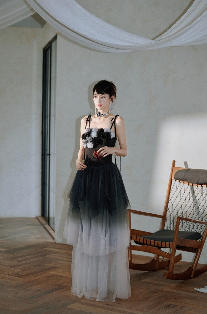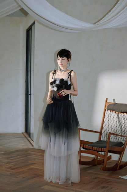 DOLLY Elegant Black Gradient French Style Suspender Irregular Prom Dress-Marcia (V)