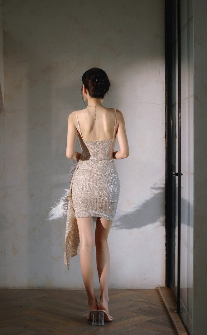 Elevate your style with the DOLLY Elegant Cocktail Dress.  Featuring a deep V-neck and sleeveless design, this dress exudes sophistication and charm. The glittering sequin details add a touch of glamour, making it perfect for any special occasion. Be the center of attention with this sexy and elegant dress.