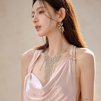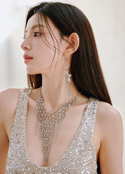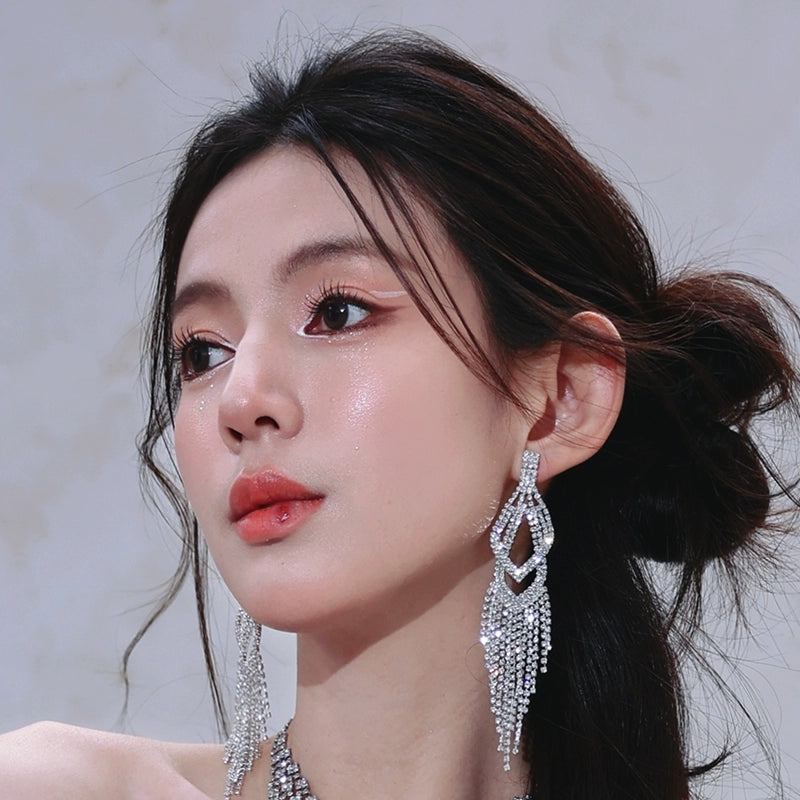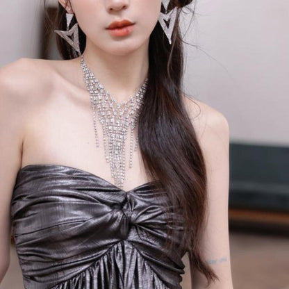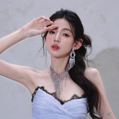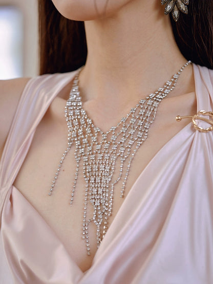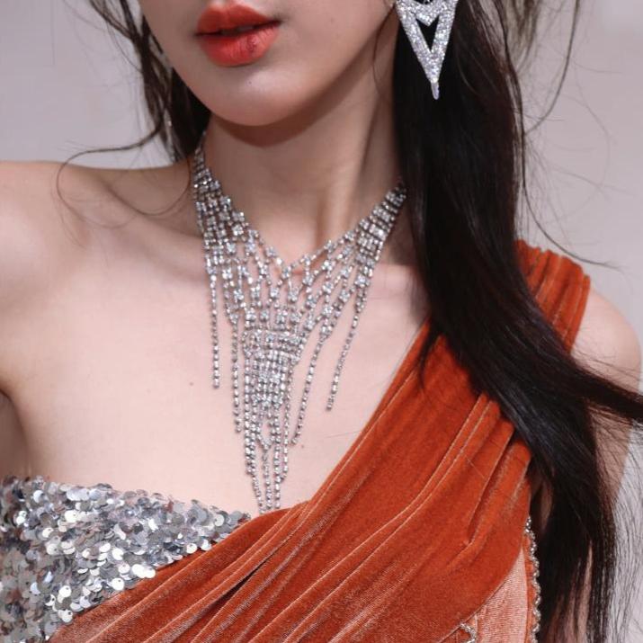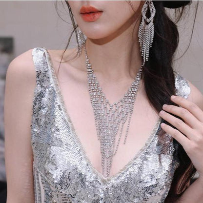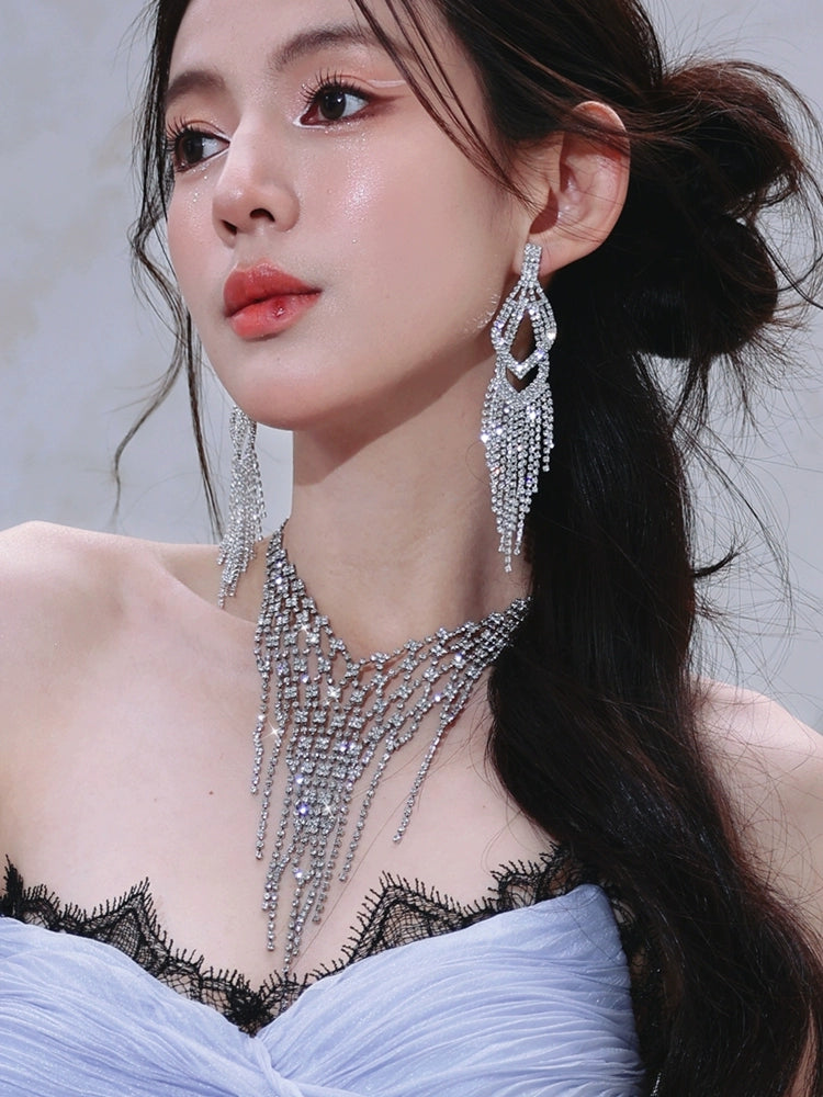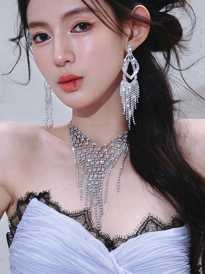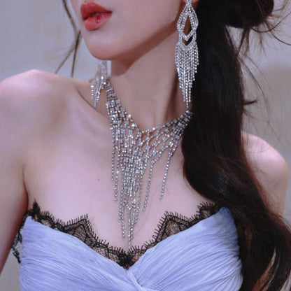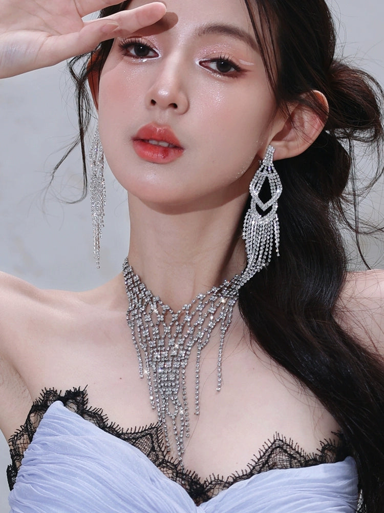DOLLY Elegant Diamond Necklaces/Irregular Tassels/Chain Earrings-Aku