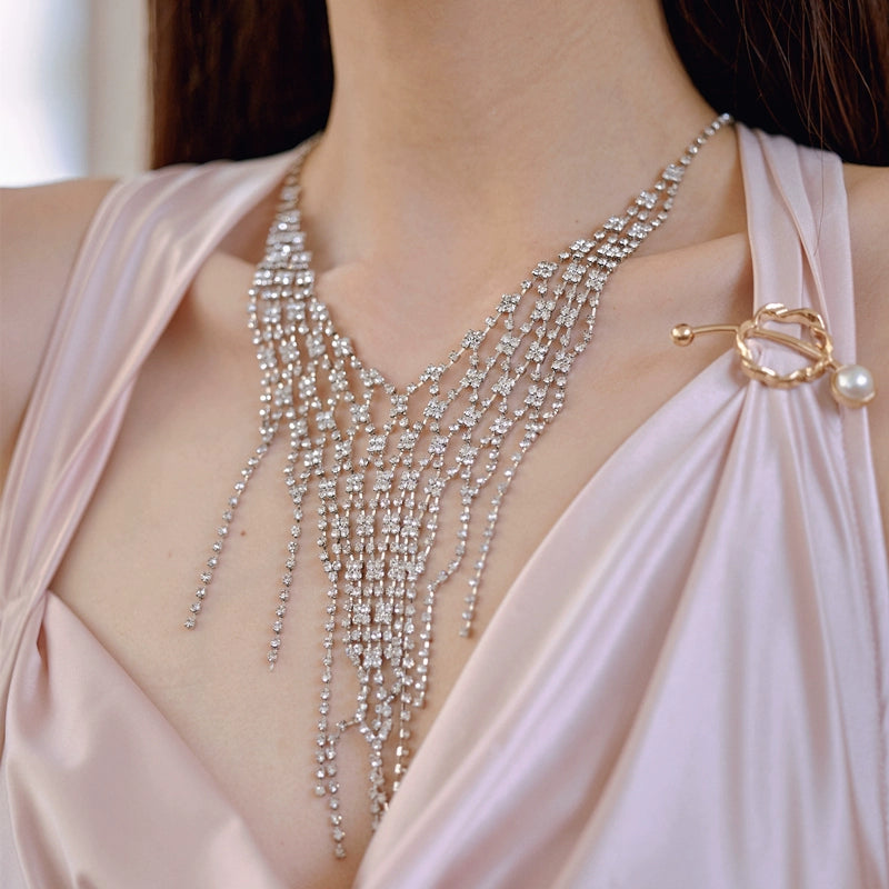 Introducing the DOLLY Elegant Diamond Necklaces with Irregular Tassels and Chain Earrings Collection. This luxurious set exudes sophistication and refinement, perfect for those who appreciate the finer things in life. Elevate your ensemble with these exquisite pieces and make a statement of exclusivity.