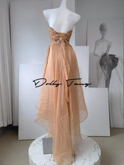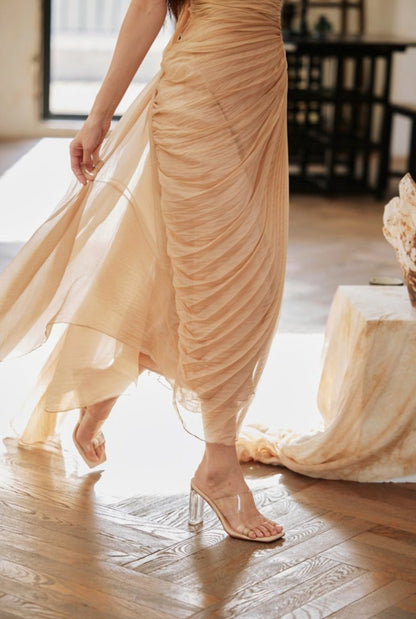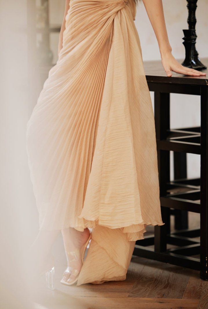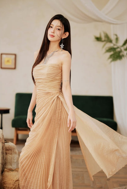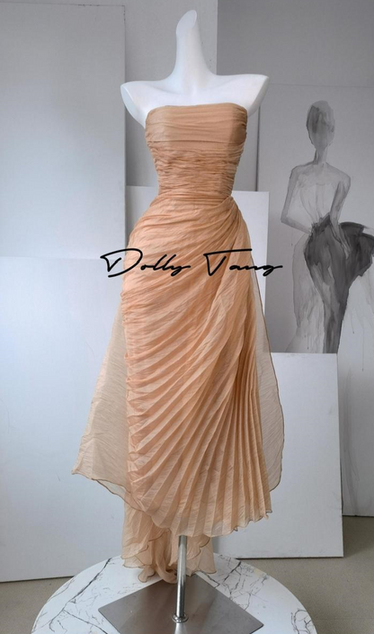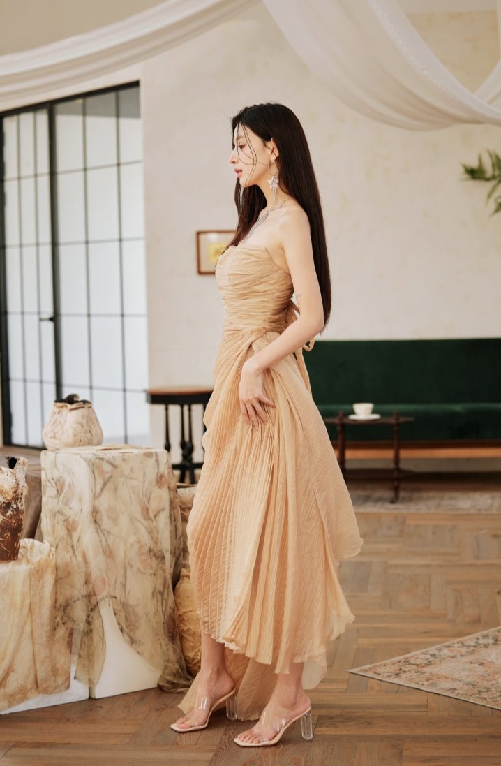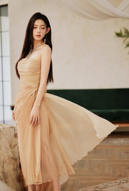 DOLLY High End Apricot Sleeveless Bandeau Slim Fit Pleated Cocktail Dress-Bebe