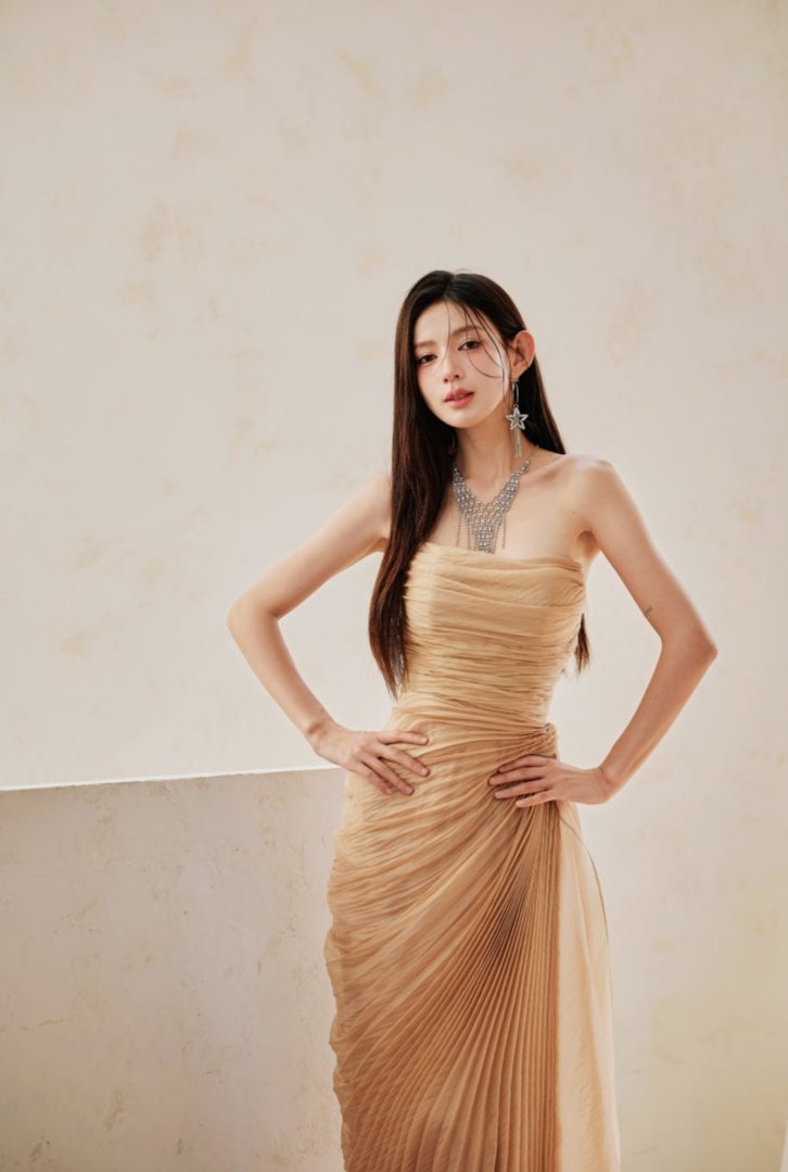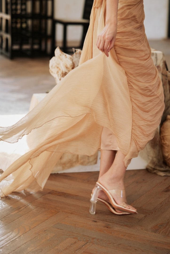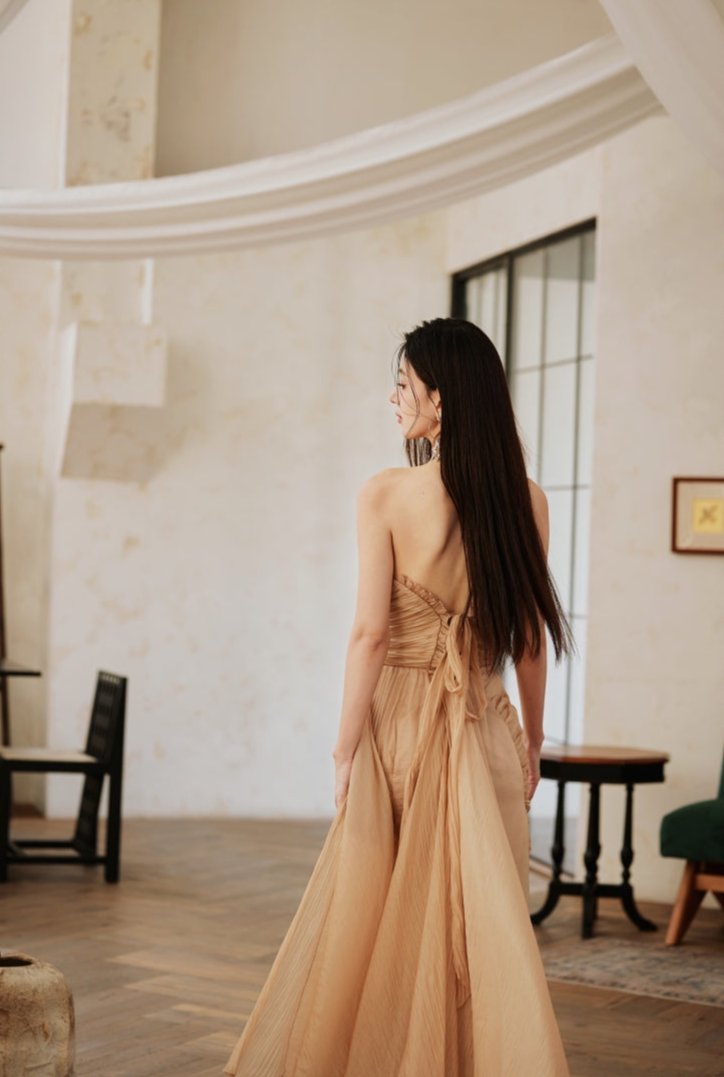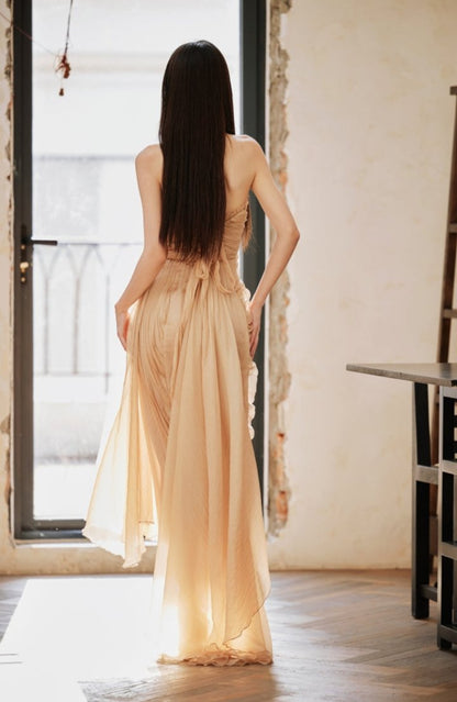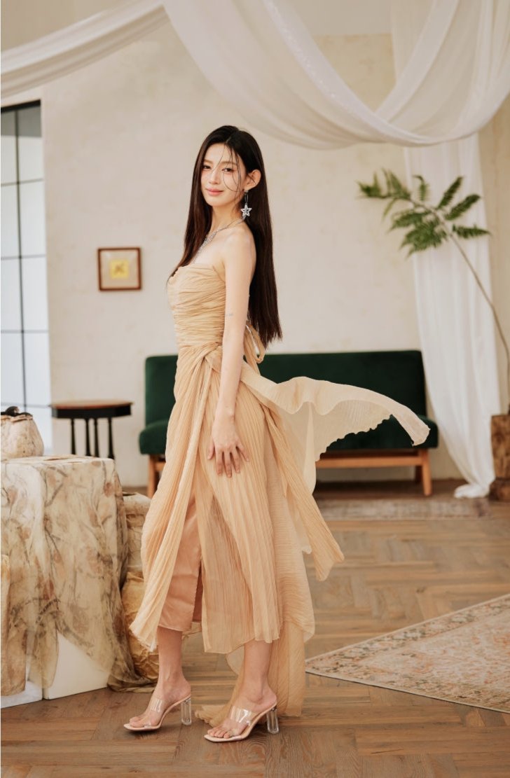 DOLLY High End Apricot Sleeveless Bandeau Slim Fit Pleated Cocktail Dress-Bebe