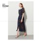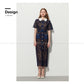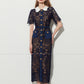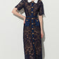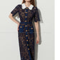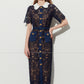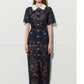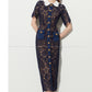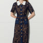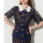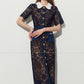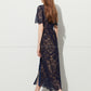 DPLAY Light Luxury Navy Blue Openwork Lace Lapel midi dress - Ebinn