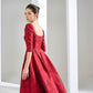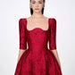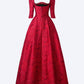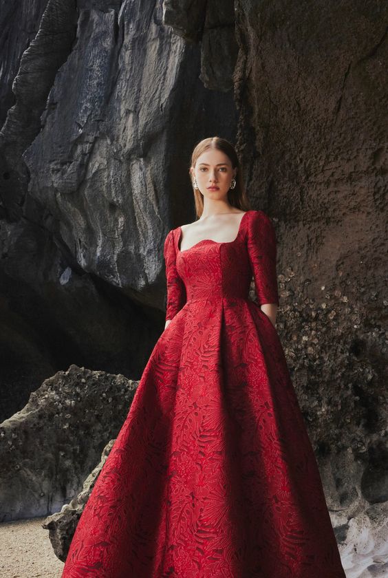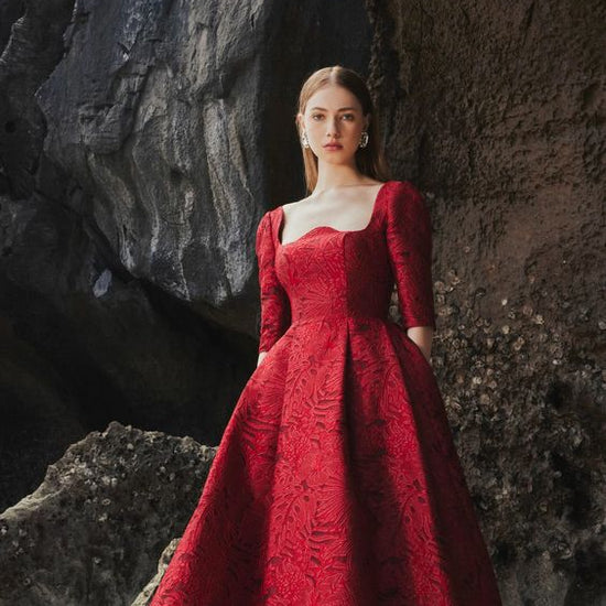 The long sleeve full dress from Tracy Studio promises to provide an elegant and luxurious look for women in important events or red carpet parties. The high-quality brocade material, decorated with delicate sunken patterns creates a sophisticated and classy appearance. The gentle pleats and exclusively wavy neckline, designed by Tracy, add extra elegance to the dress, creating a timeless and classic style reminiscent of European aristocrats.