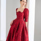 Long Sleeve Curved Neckline Full Dress - Mela