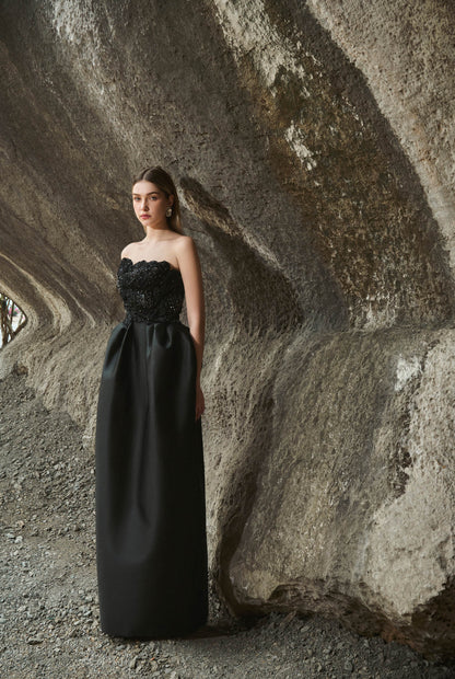 The Dress embodies luxury, femininity, and elegance. With its strapless design, embellished with flower embroidery and high-quality tailoring and hand-cutting techniques, this dress is a statement piece for formal events. This dress is a perfect choice for the stylish and confident woman who wants to make a lasting impression.