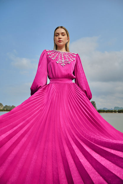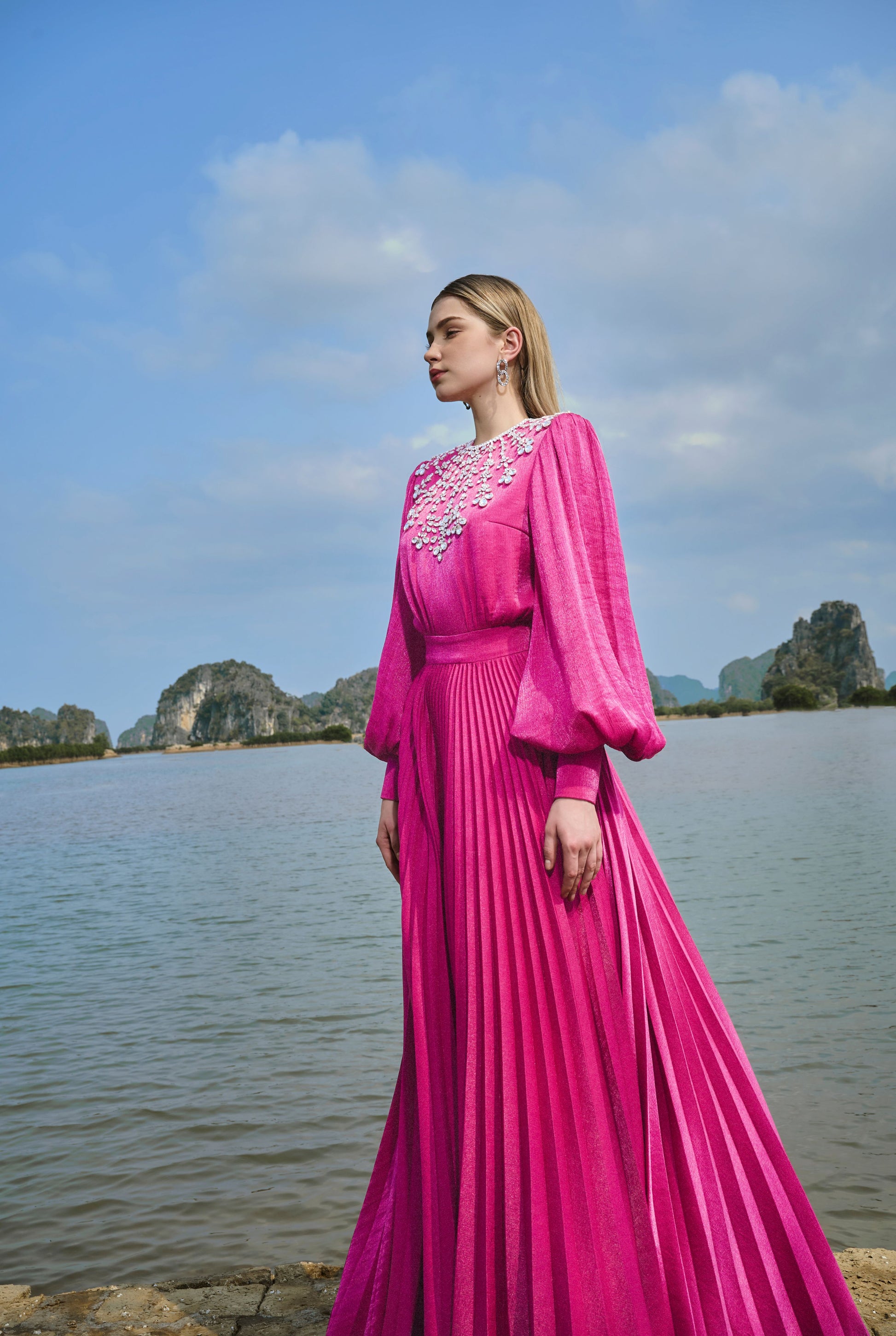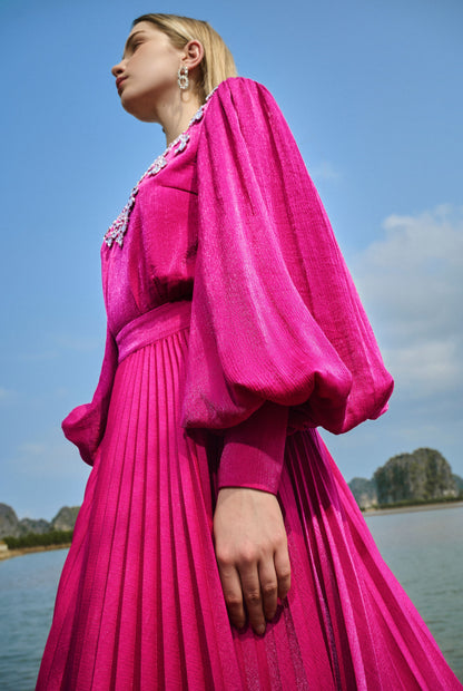 This dress effortlessly combines femininity and sophistication, creating a captivating and contemporary look. The pleating detail adds dimension and texture, lending a touch of elegance to the overall design. With its figure-flattering silhouette and tailored pleats, this dress accentuates your curves while maintaining a polished and refined style. The back slit adds an unexpected element, allowing for ease of movement and showcasing a hint of allure. Whether it's a formal event or a night out, this pleating dress with a back slit is sure to make a statement and turn heads wherever you