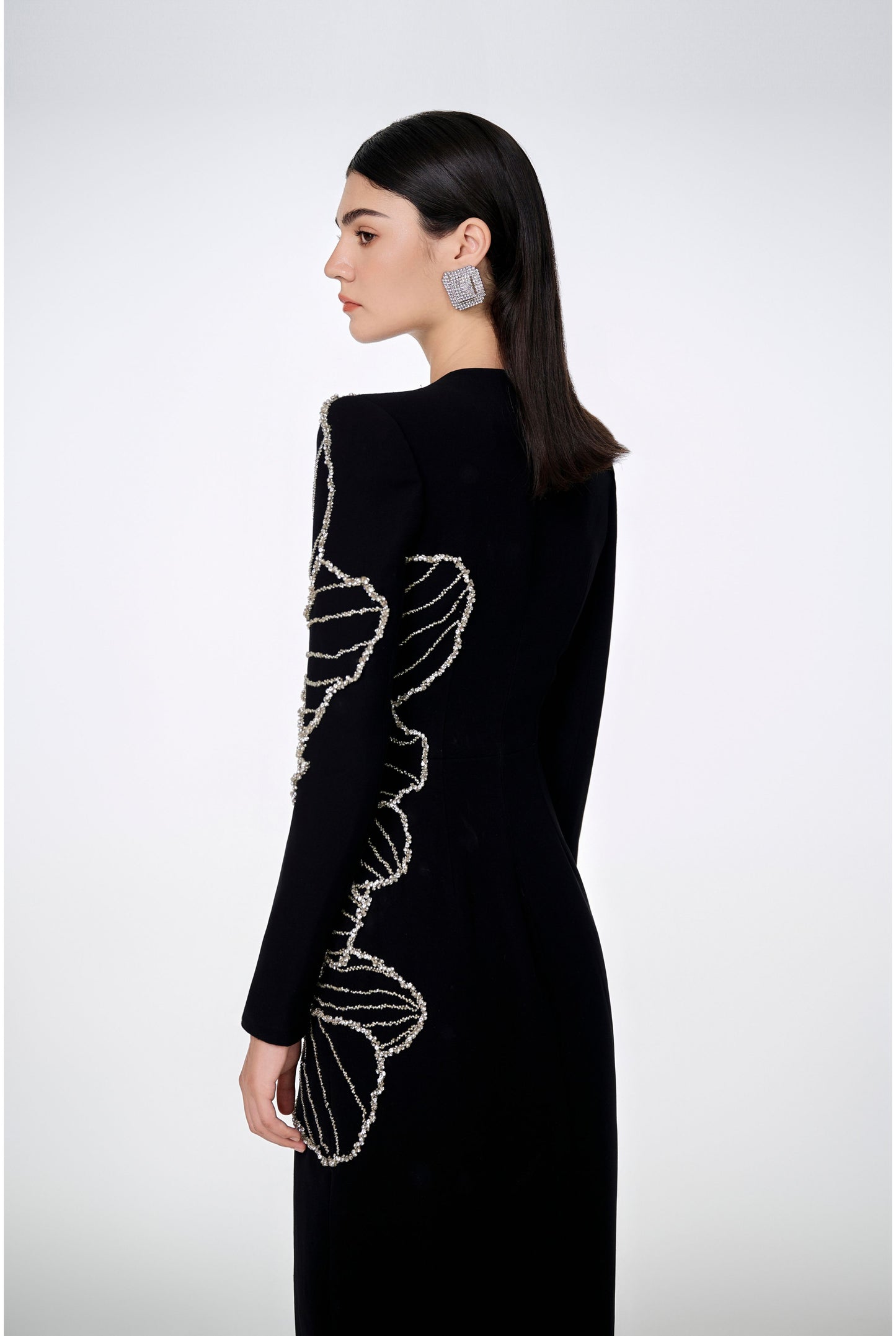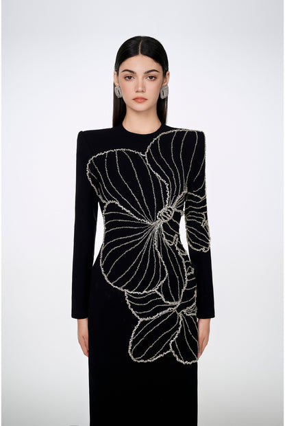 Tracy Studio presents a stunning bodycon dress, embodying the brand's commitment to elegance, femininity, and luxury. This dress features a unique orchid pattern that covers the entire body, showcasing the brand's attention to detail and high-end tailoring techniques. The intricate design is created through a combination of large-scale tailoring and exquisite hand-tailoring techniques, ensuring that each detail of the orchid pattern is perfectly connected to form a cohesive whole. This dress is both modern and chic, with an elegant yet seductive look that makes it suitable for red carpet events, formal occasions, or even street walks. The Bodycon Dress by Tracy Studio is a must-have for any fashionista looking to make a statement
