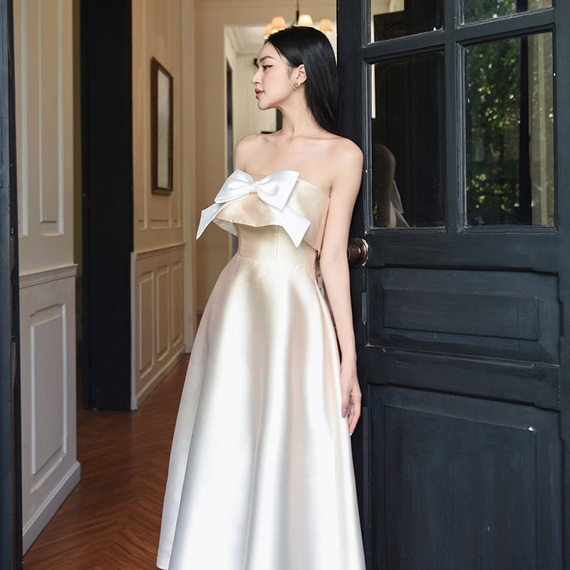 The Early Spring 2023 tube top gradient sweet dress- Nuli offers a sophisticated and modern silhouette crafted from taffeta fabric. Featuring a folded chest flap and a fitted waist, the dress creates a flattering A-line skirt with a length of 102cm. Its timeless style is perfect for a variety of occasions.