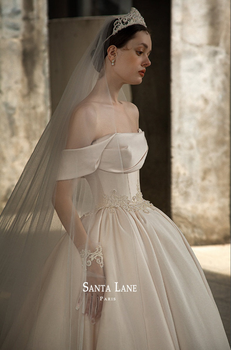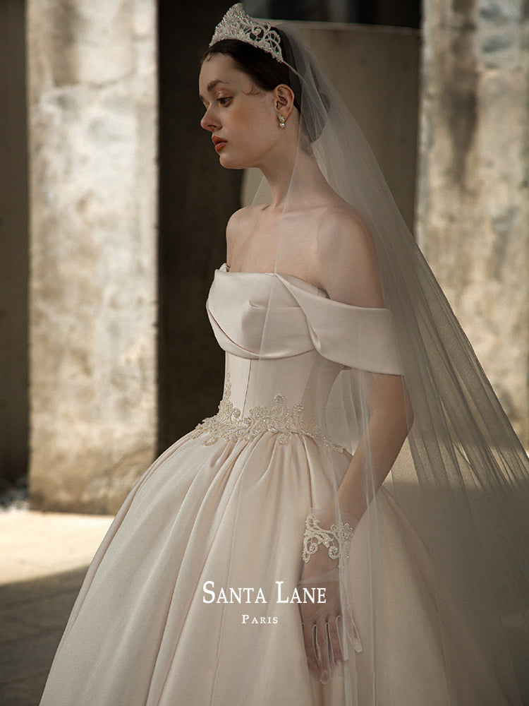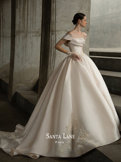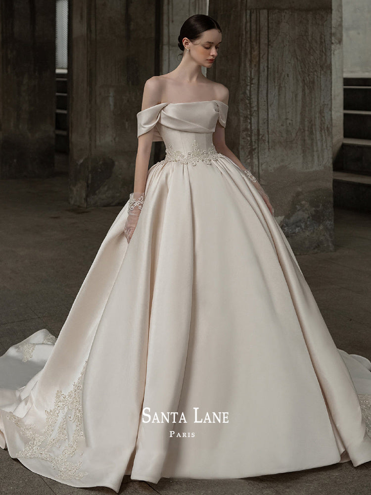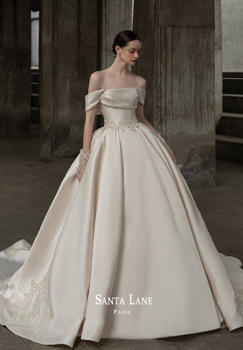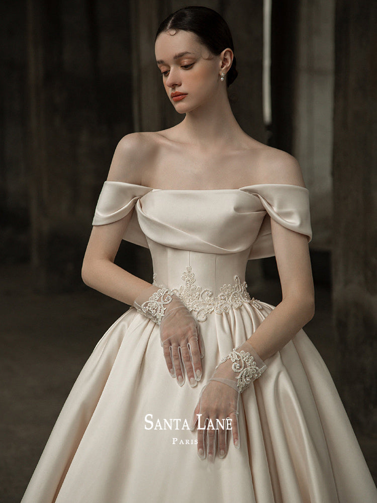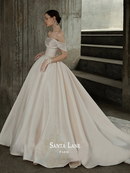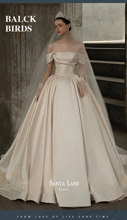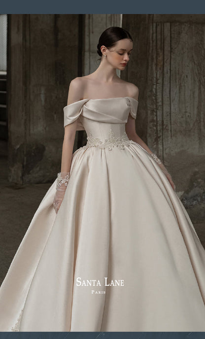 Early Spring 2023 Winter one-shoulder satin satin wedding dress- Sally